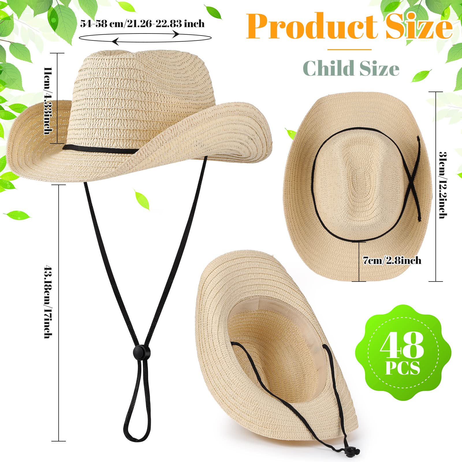 48 Pcs Kids Cowboy Hat Bulk Western Party Straw Cowboy Cowgirl Sun Hat Set with Lanyard for Children Boy Girl Party Costume Accessories