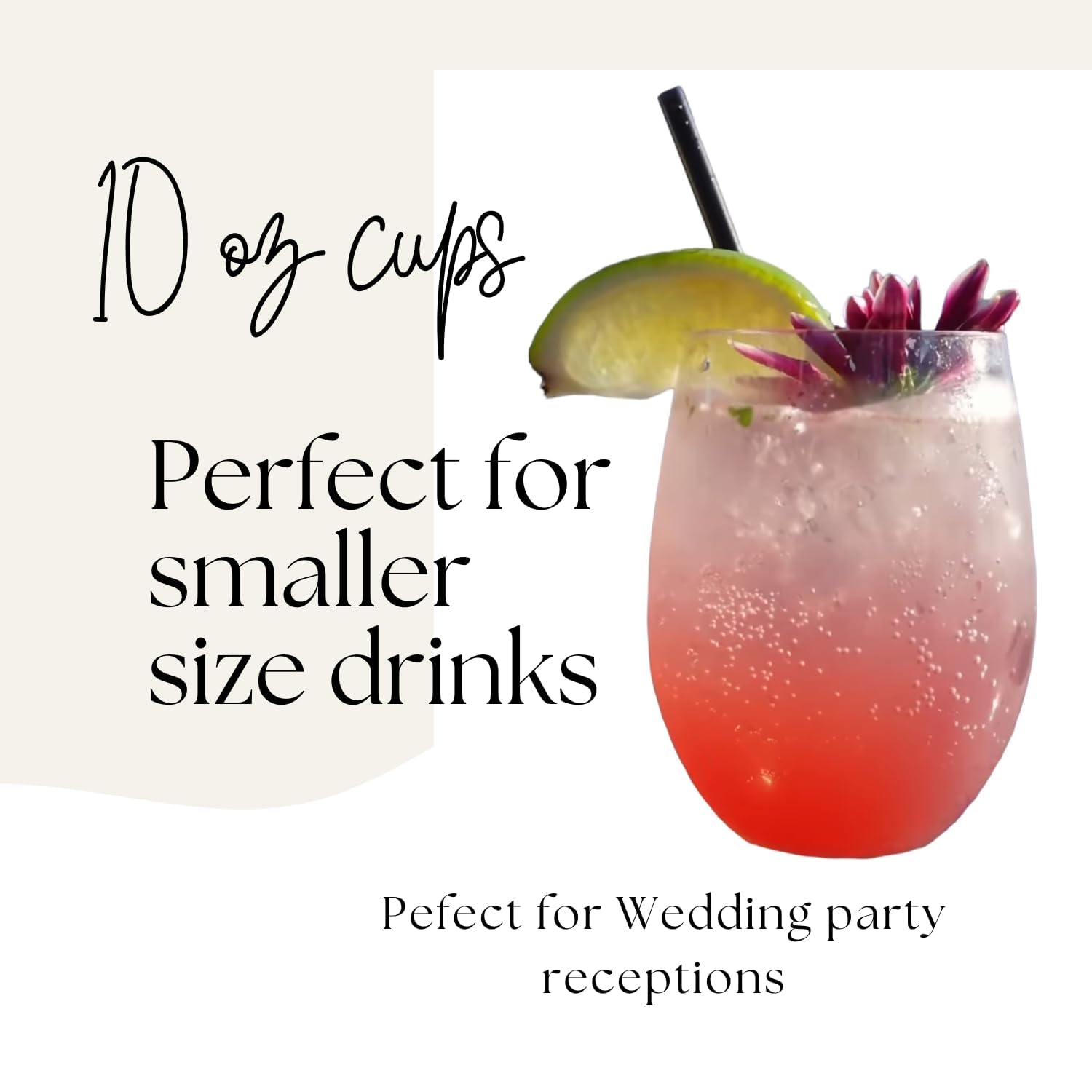 - Small cups size 10 oz Elegant Gold Rim Design Add a sophisticated touch with the classy gold rim—perfect for weddings, showers, holidays, or elegant dinner parties. The clear plastic design mimics real glass for upscale presentation. Durable & Shatterproof – Made from high-quality, unbreakable plastic, these plastic stemless wine glasses disposable provide a safe and sturdy alternative to traditional glassware, ensuring a worry-free celebration.