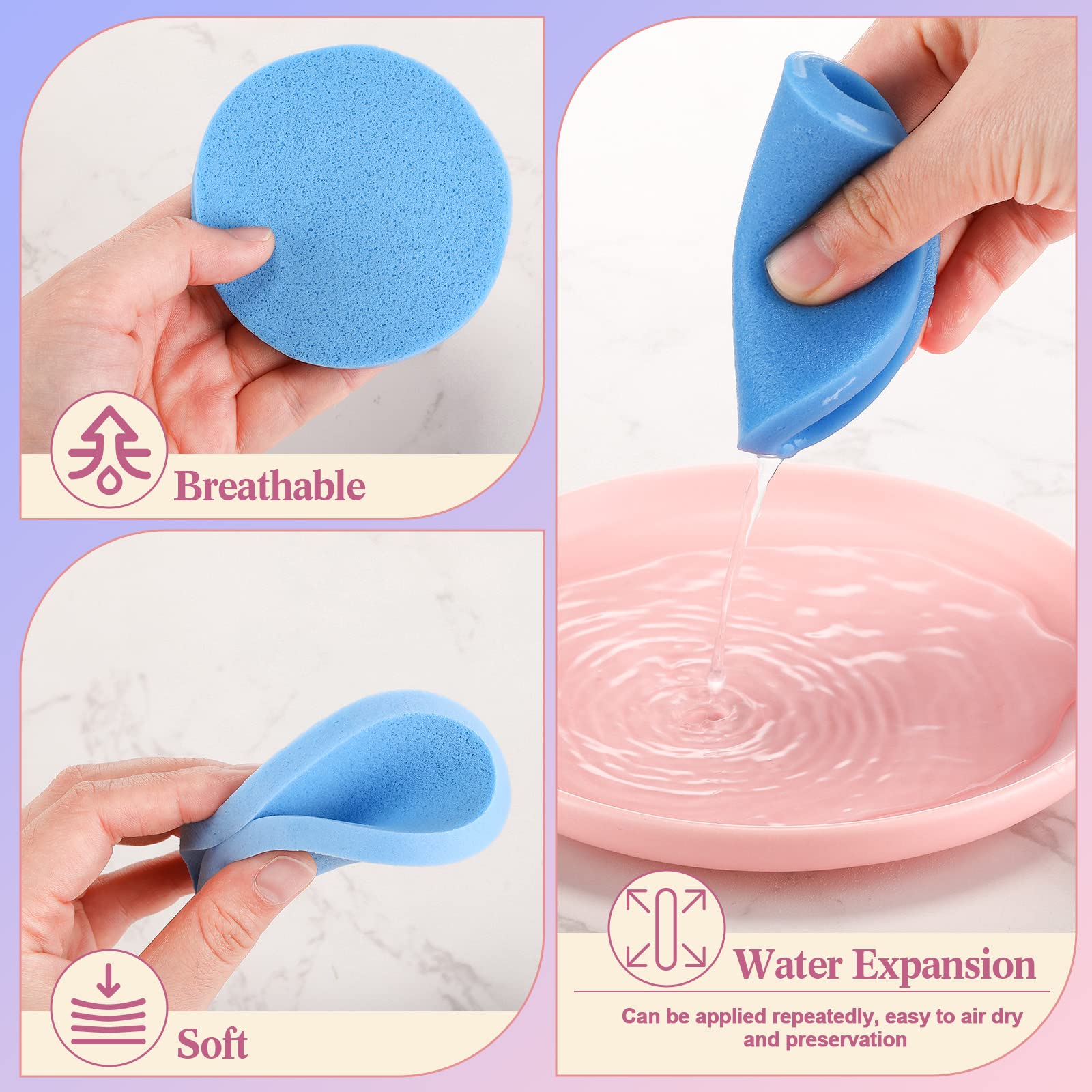 - Proper Size: the makeup remover sponge will become a circle with a radius of 3.3 inches and a thickness of 0.3 inch after absorbing water, which is a moderate size and suitable for facial cleaning, easy for you to hold and use