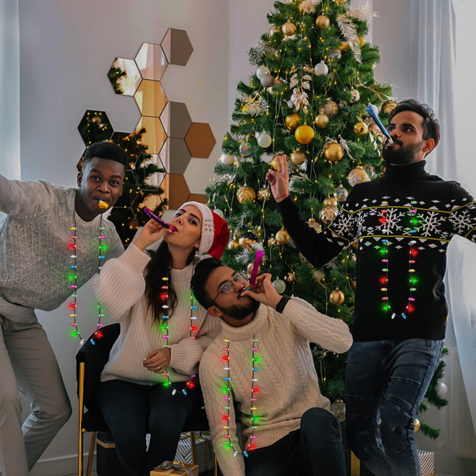 - Light Christmas Supplies - Bulb Christmas lights necklace light up is the perfect decor for Christmas parties, ugly sweater parties and more. Light up your Christmas.