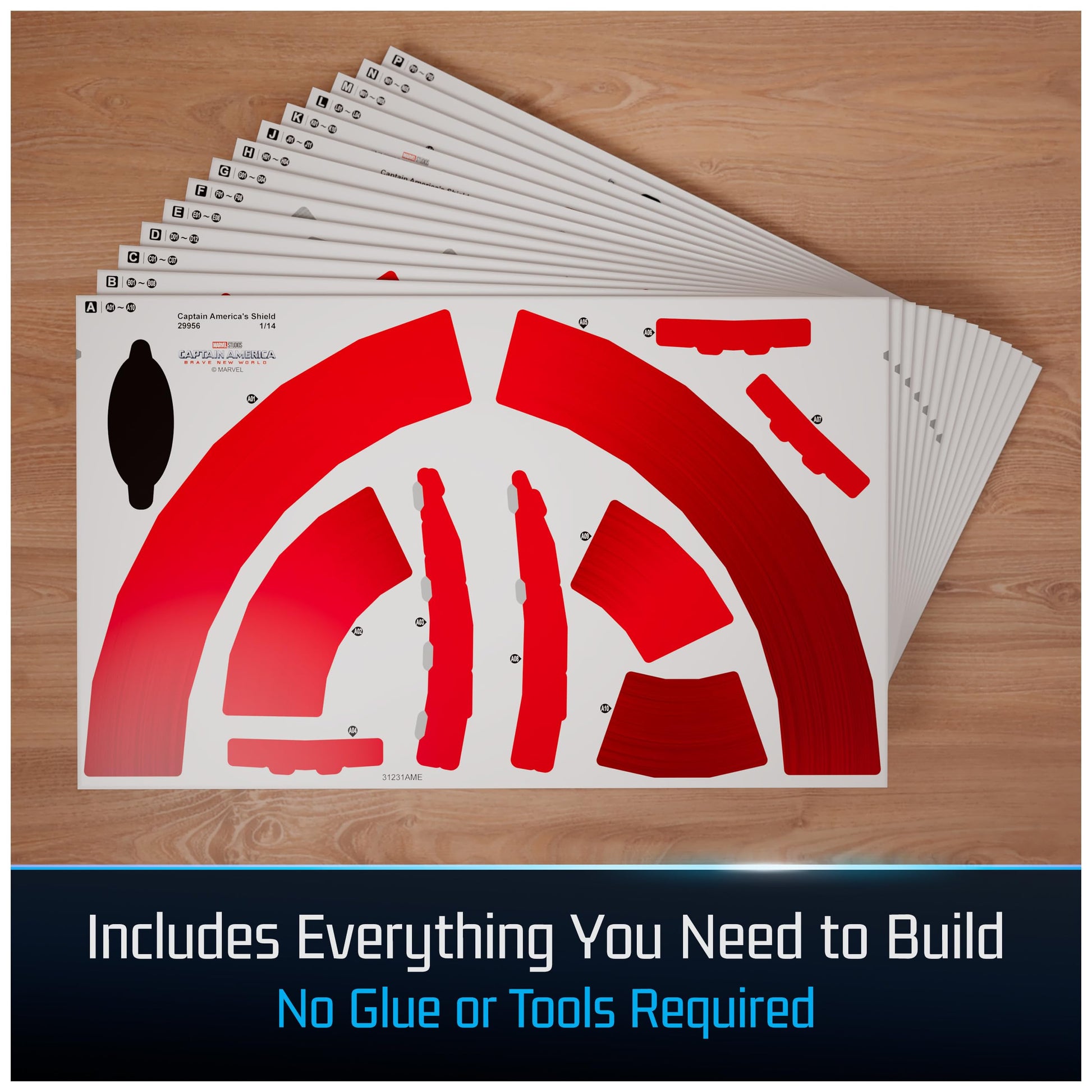Details: This 4D Build Captain America Shield is beckoning to be displayed on your shelf! Embark on a superhero adventure with our collection of Marvel 3D puzzles. This 4D Build Captain America toy includes a stand for display when it’s complete! You get 14 sheets with 101 detailed punch-out pieces and easy-assembly instructions. No puzzle glue or tools required! The Captain America Shield model kit measures 16 in x 7 in x 17 in (40.8 cm x 18 cm x 43.2 cm). Perfect for your home as bedroom decor, game room decor, or with your Avengers toys - display your model kit with pride. For new young fans of Marvel, this puzzle makes the perfect present for any teen superfan. And for old fans of the original superhero toys, it is the perfect adult toy, as well. 4D Build makes fantastic birthday gifts for men and gifts for him! Whether you love the Black Panther, Thor Hammer, or Spiderman toys, this 4D Build puzzle is for you. Check out our other toy building sets for more Marvel & Spider Man toys for ages 14 and up. Get out your Iron Man action figure & more collections for some Marvel fun and start building!