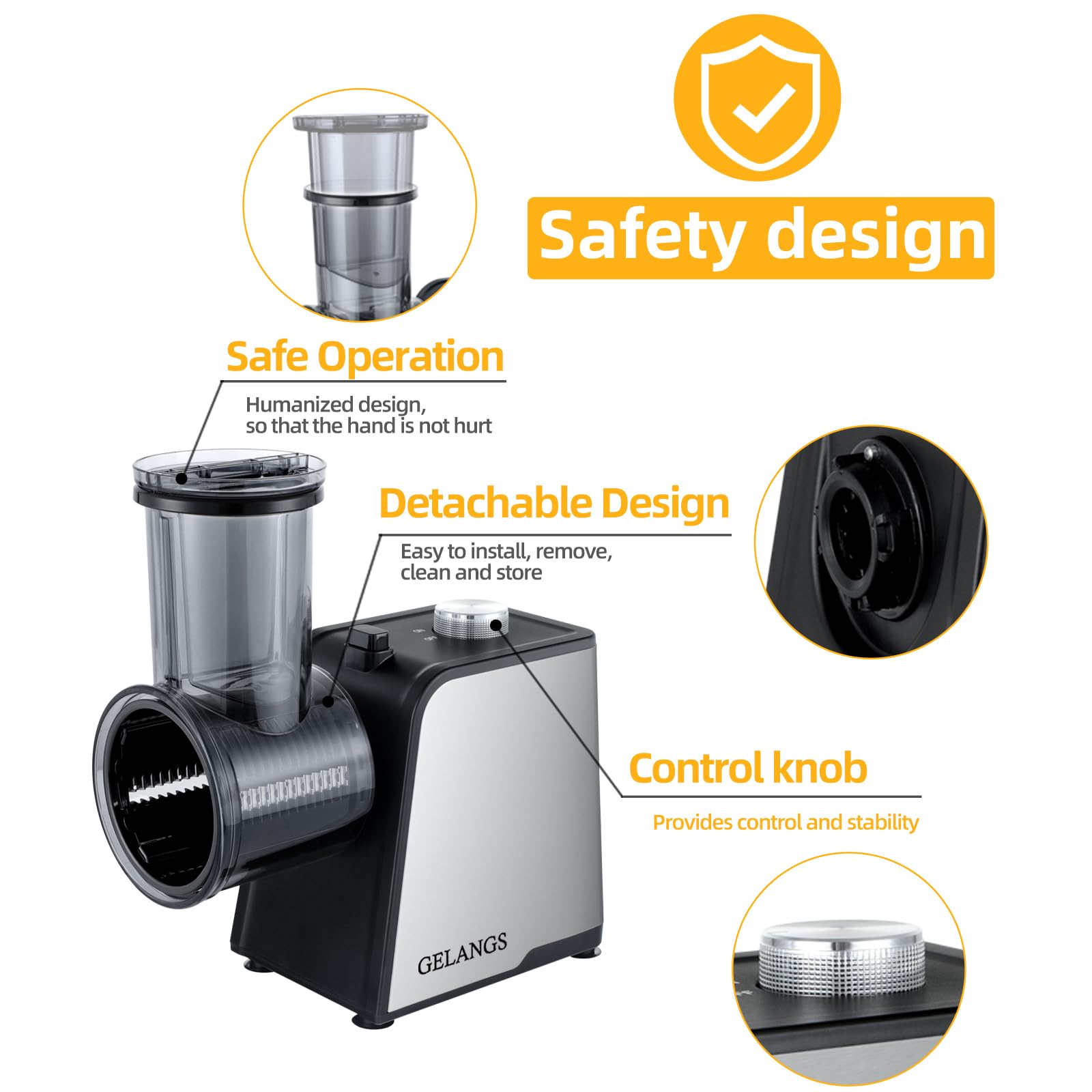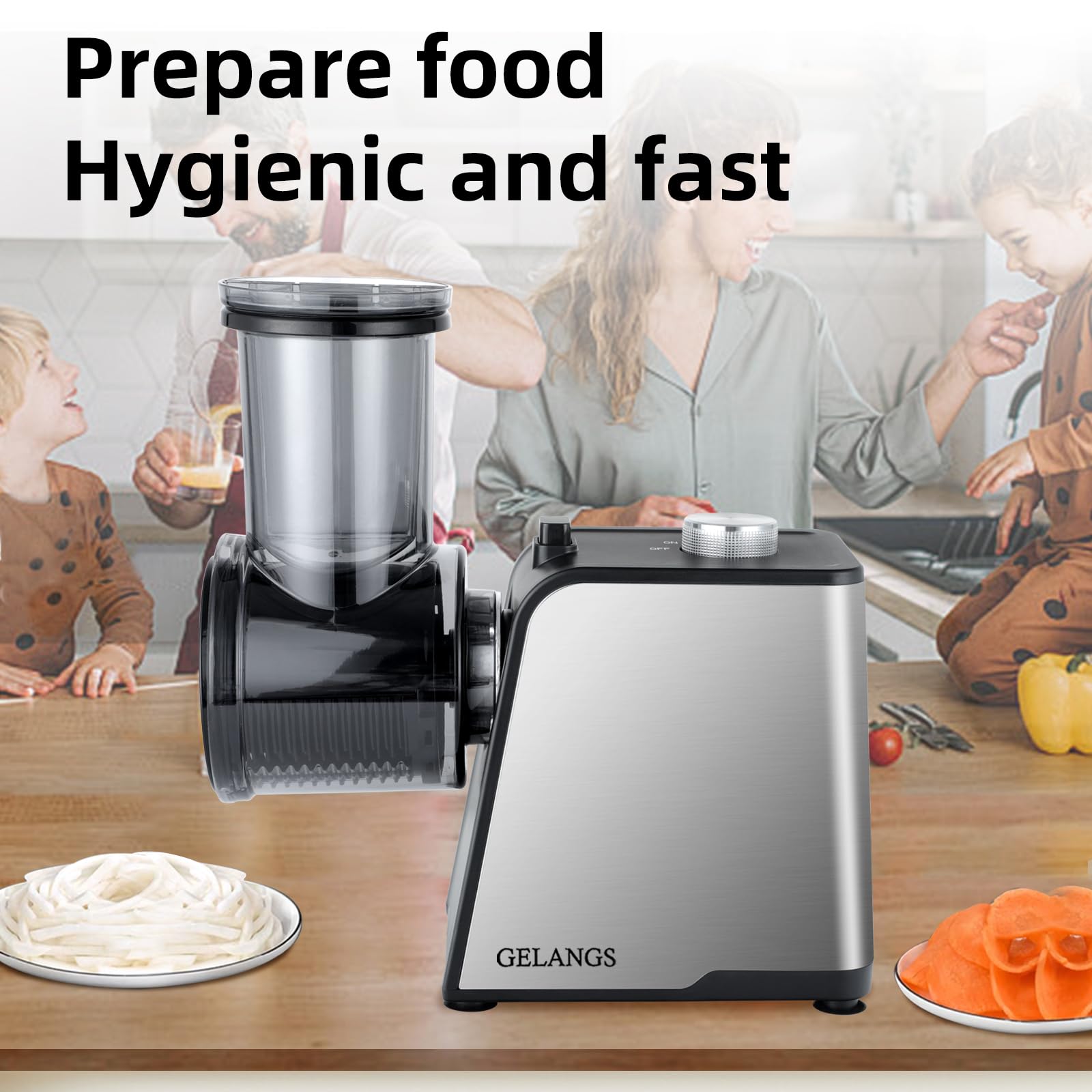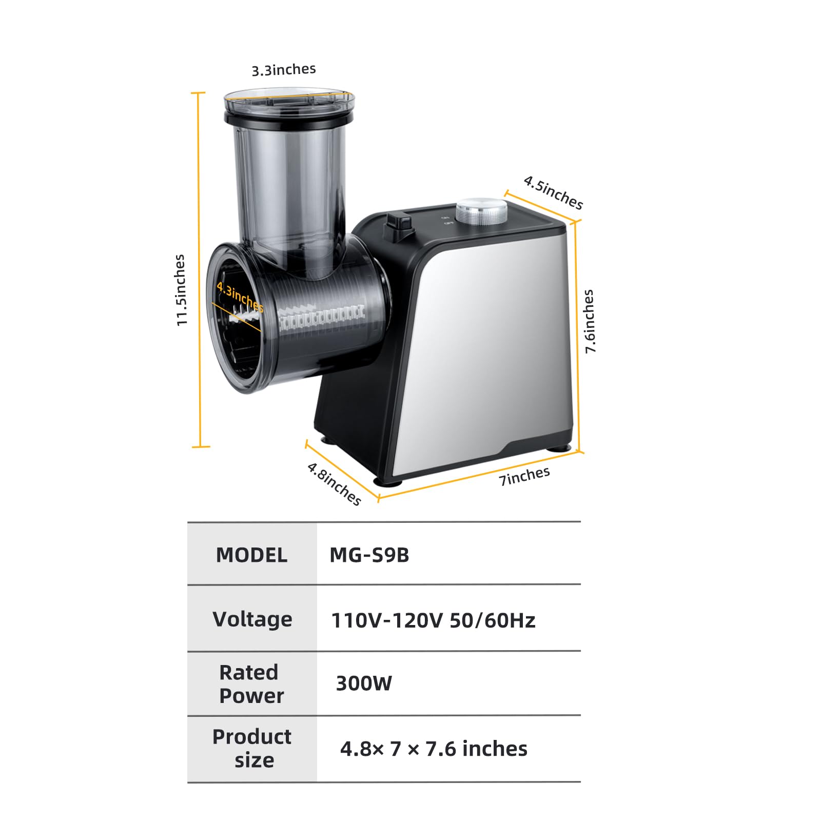 - 300W High-Efficiency Power for Time Savings: Equipped with a powerful 300W motor, this electric vegetable slicer easily handles tough ingredients like carrots and potatoes. It delivers uniform, jam-free slices quickly, making meal prep faster and more enjoyable. Compared to manual slicing or traditional graters, it's safer and reduces the risk of hand injuries.