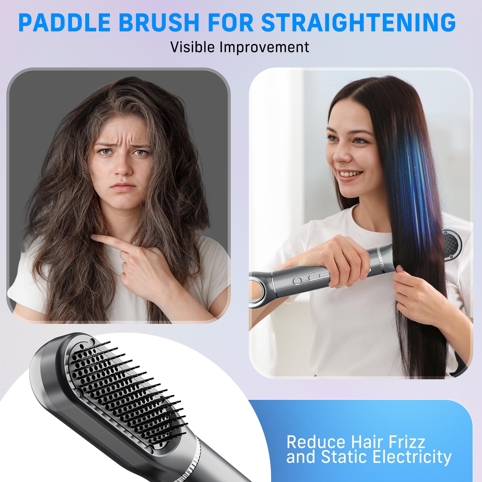 - 【500 Million Negative Ions & Intelligent Heat Sensor】QUICO ionic hair styler employs advanced negative ions tech, releasing a staggering 500 Million negative ions, these ions reduce 95% of static, tame frizz and and protect hair from heat damage during styling. With an intelligent heat sensor monitors temperature 1000 times per second, 𝗺𝗶𝗻𝗶𝗺𝗶𝘇𝗲 𝗵𝗲𝗮𝘁 𝗲𝘅𝗽𝗼𝘀𝘂𝗿𝗲 and safeguarding your hair from damage. Perfect for curling, straightening, volumizing, and drying—all in one!