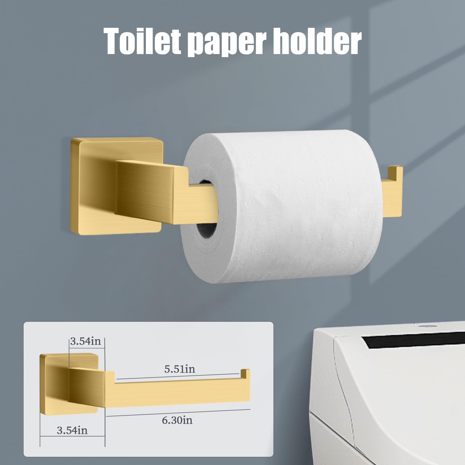 - 5-Piece Combination - The gold bathroom hardware set include 1×16 Inch gold towel bar, 1 × toilet paper holder , 1 × hand towel holder and 2 × PREMIUM towel hook. You don't need to take the time to select them one by one. This gold bathroom accessories can meet all your needs in daily life that match nicely with your bathroom fixtures