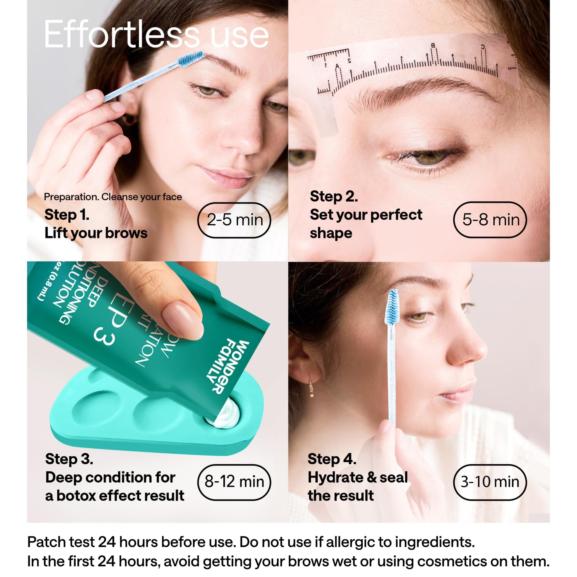 - Easy to Use & Lift: apply our brow perm kit in 5 easy steps, first using the perm solution, then fixating the brow hair, using deep conditioning, then final pampering to complete the lamination, maintaning it with brow care serum