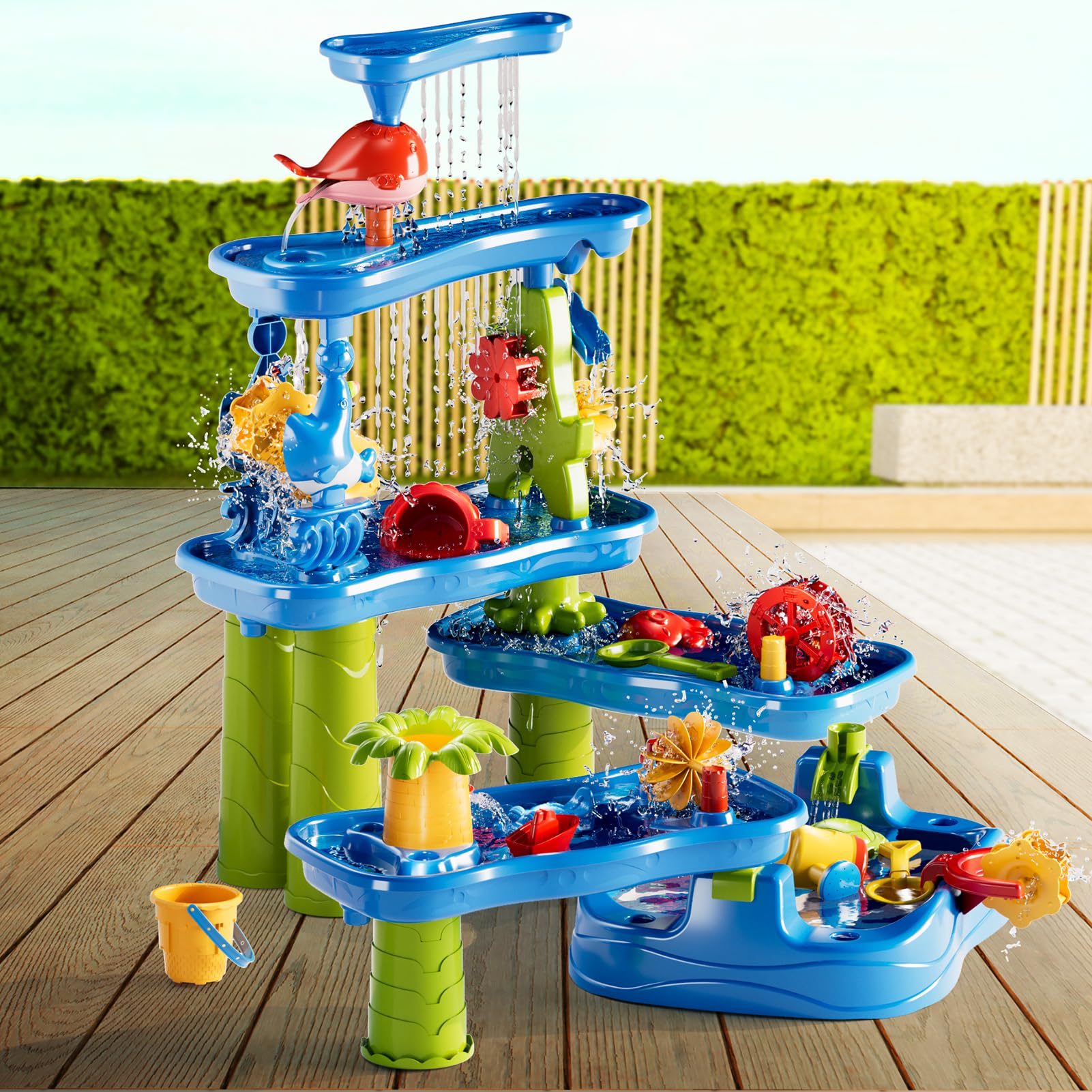 5-Tier Water Table for Toddlers Kids 3-5 4-8, Sand and Water Play Set with Rain Showers Pond, Summer Outdoor Toys Beach Toys Water Sensory Table, Birthday Party Gifts for Kids Boys Girls