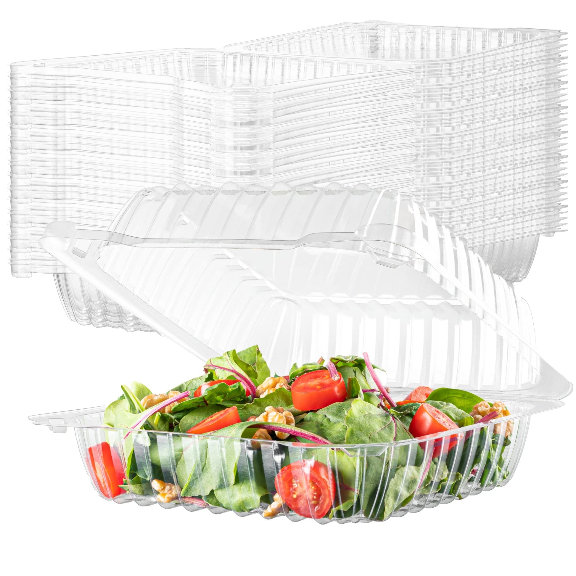 50 Clear Plastic Containers, 8" X 8" X 3" Hinged Lid Togo Clamshell Food Containers for Food, Strawberry Boxes, Bakery Supplies, Cake, Cookie, Dessert, Salad, Treat Boxes