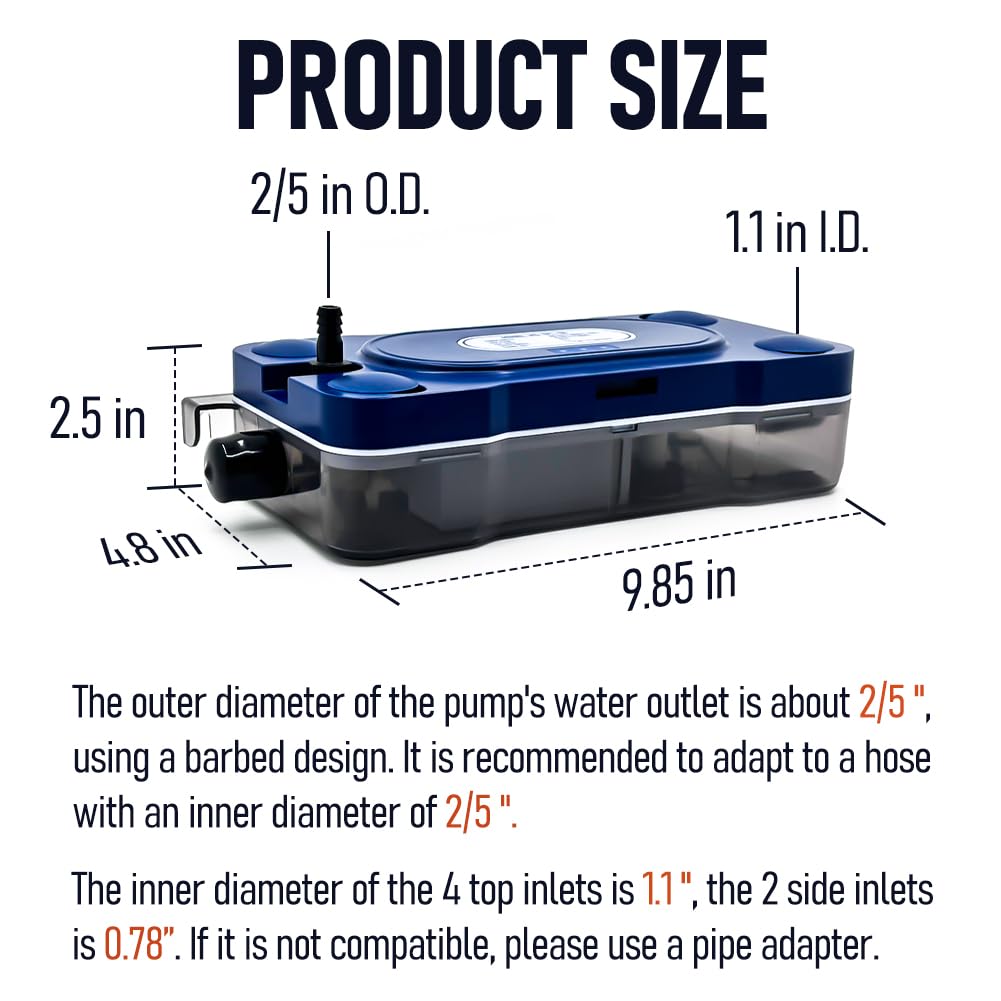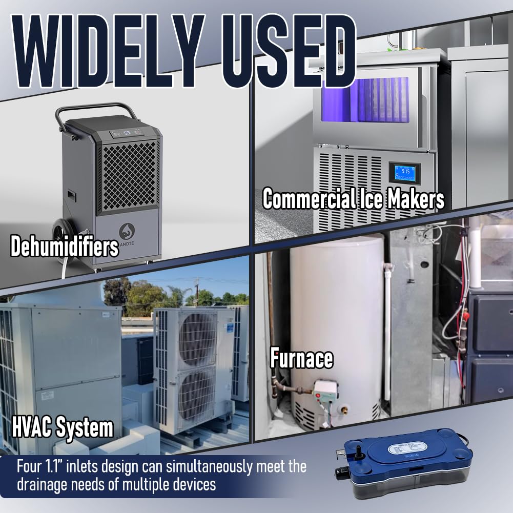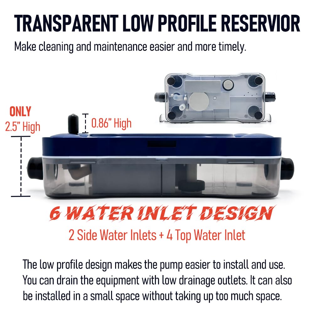 - Auto Safety Switch for Overflow Protection: Equipped with an automatic safety switch, the condensate pump can shut down your HVAC system to prevent overflow, offering peace of mind and protecting your house.