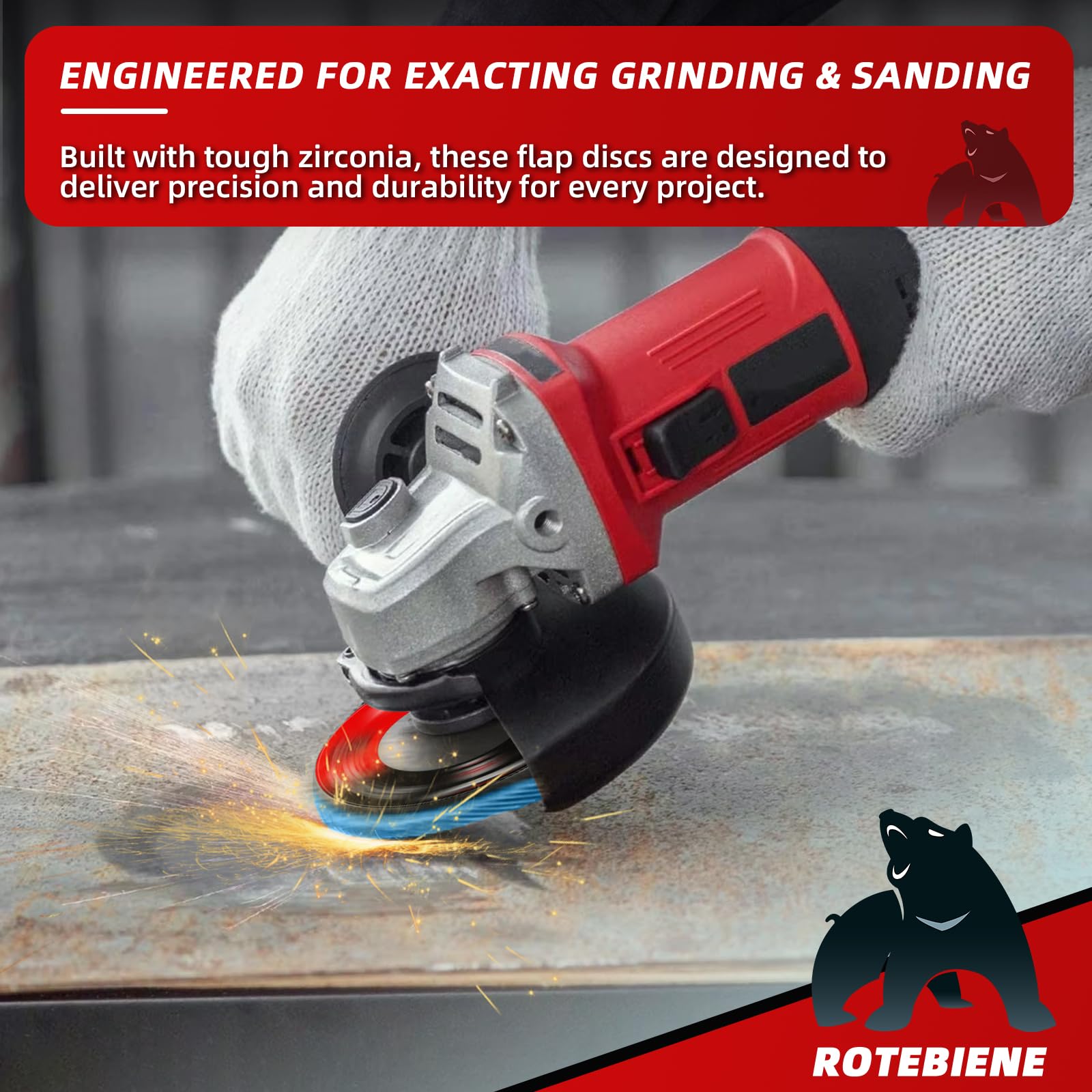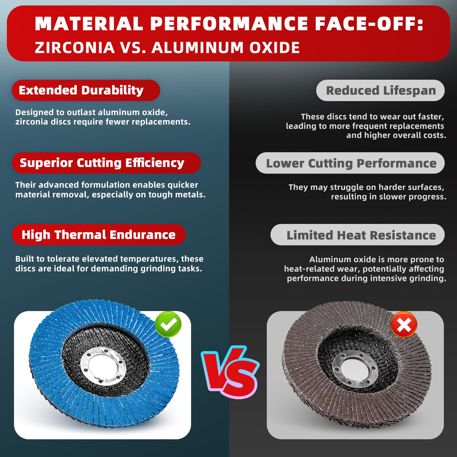 - 【Built to Endure】Engineered from robust zirconia alumina, these flap discs offer extended life and enhanced performance over standard abrasives. The reinforced fiberglass backing effectively reduces vibration for a safer, more efficient grinding experience, even under high heat and pressure.