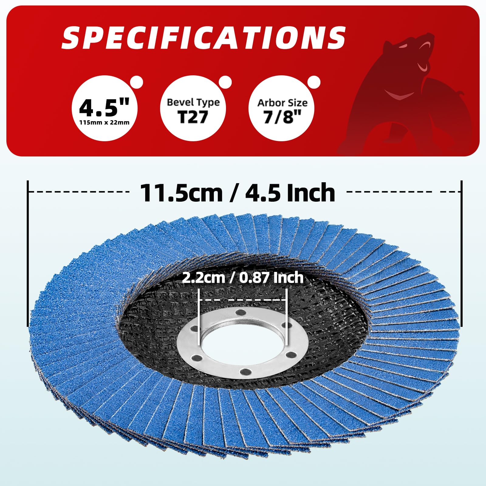 - 【Industrial-Grade Performance】Our 4-1/2-inch by 7/8-inch flap discs meet industrial standards and are perfectly suited for 4-1/2-inch angle grinders, making them ideal for aggressive material removal and smooth surface blending.