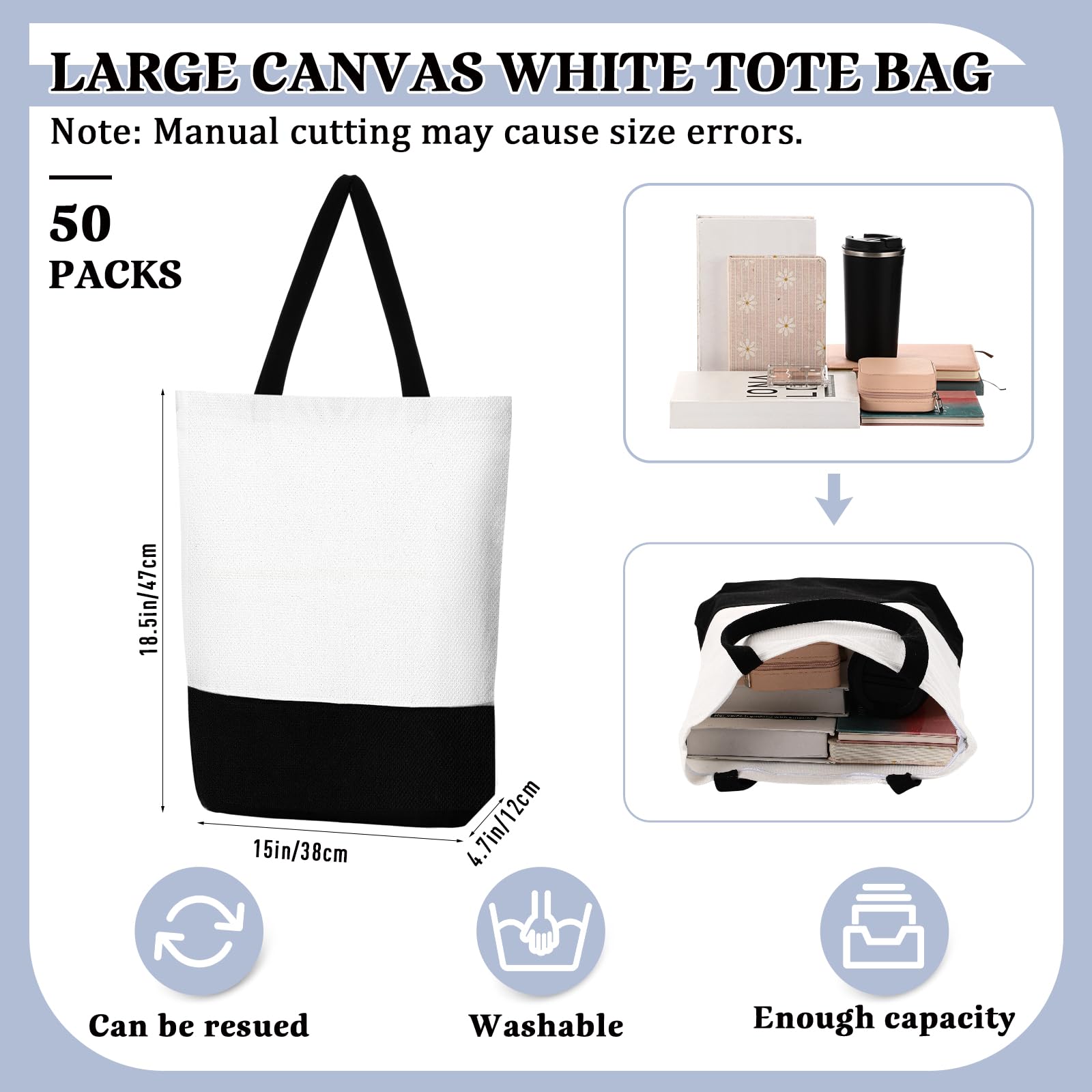 50 Pieces Large Canvas Tote Bags Reusable Sublimation Blank Plain Bags Bulk with Zipper for DIY Crafts Shopping Women Teacher(Vertical Large Bag)