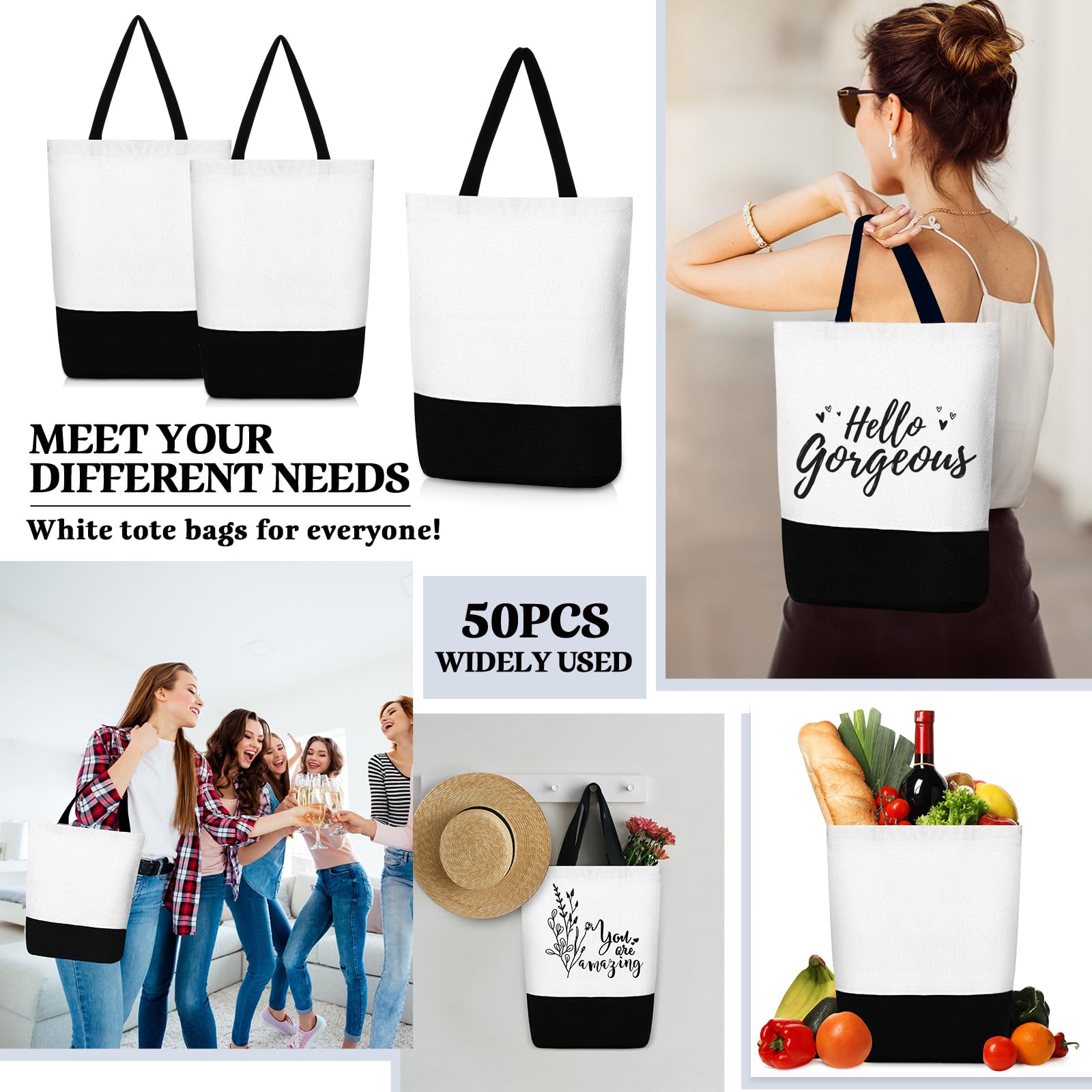 - Package Includes: you will receive 50 pieces of the cloth tote bags with handles, so the large quantity can satisfy your daily use, replacing, sharing and DIY needs, no need to worry about the insufficiency problem