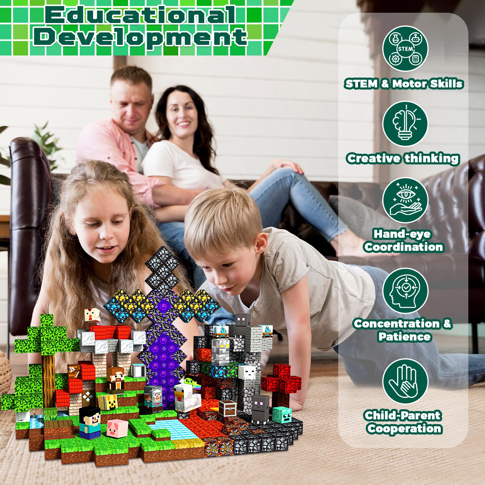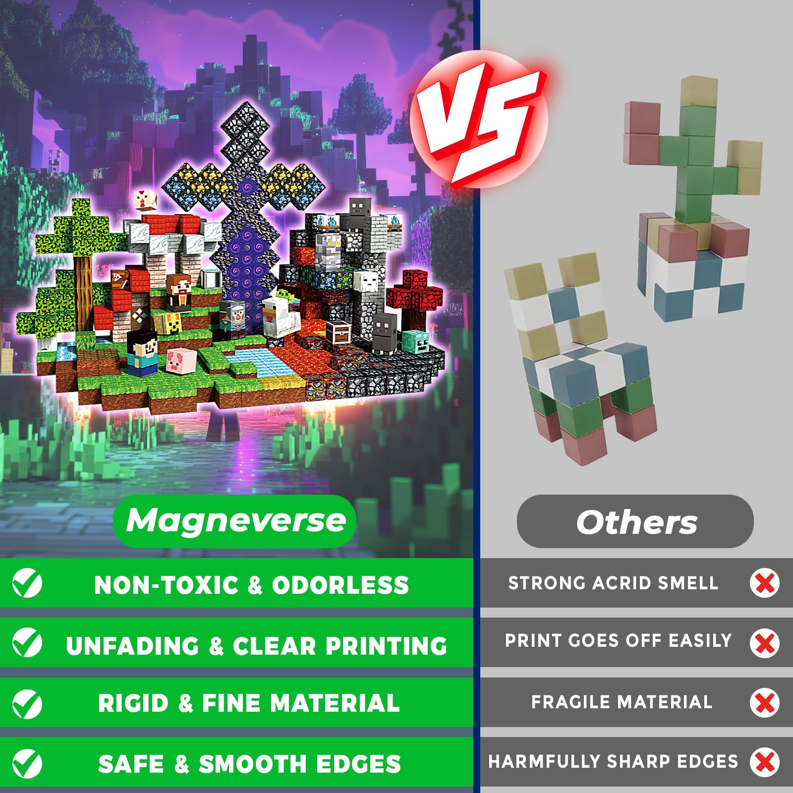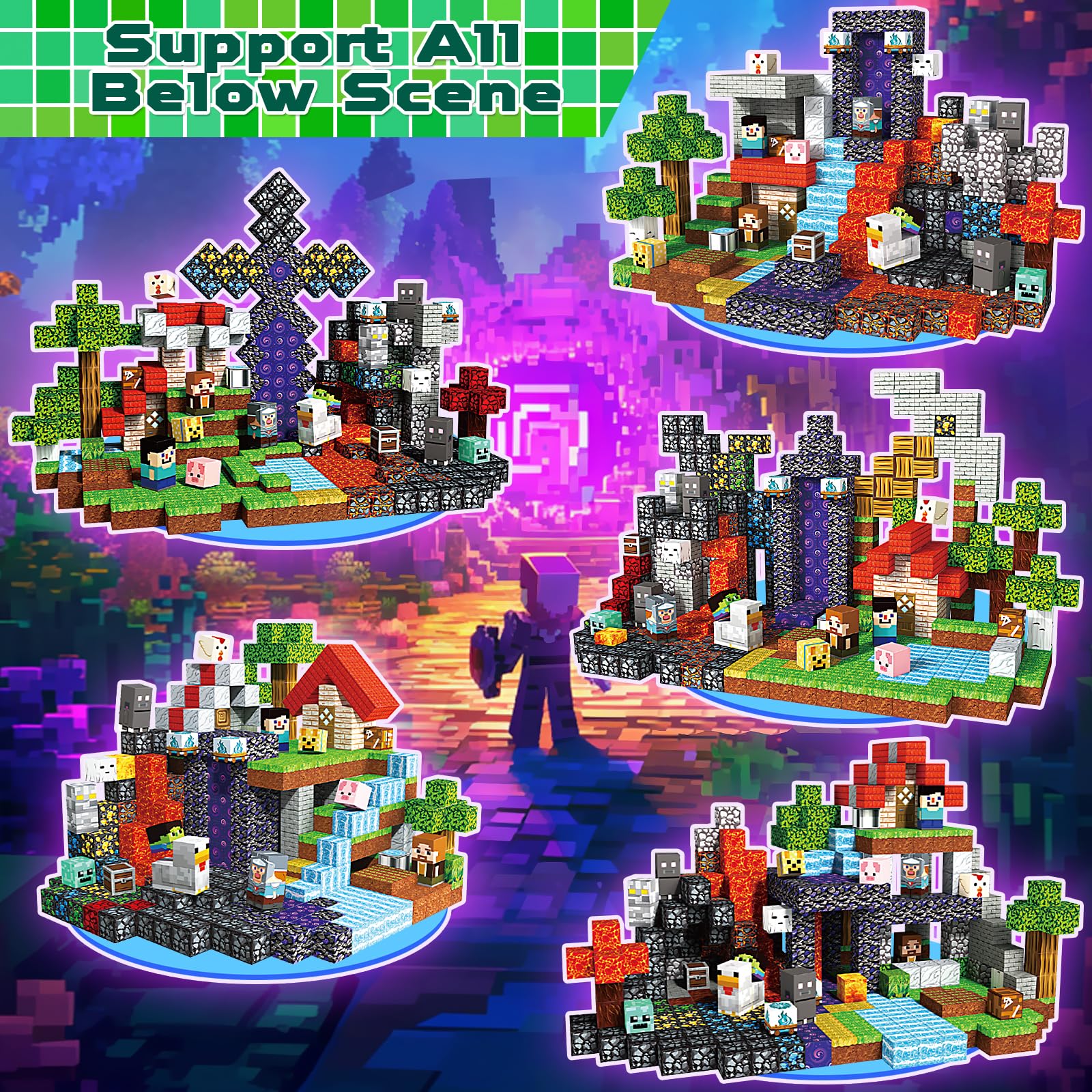 - 【Imaginaions & Creativity Builder】Let's embark on an adventure with magnetic building blocks! Spark the imagination of children with themes of lava, portal and forest. These magnet blocks encourage open-ended play, allowing kids to construct, demolish, and rebuild as they please. Safe, durable, and designed for little hands, our magnetic cubes make learning fun, enhancing focus, patience, and motor skills—ideal toys for kids 3+ years old.