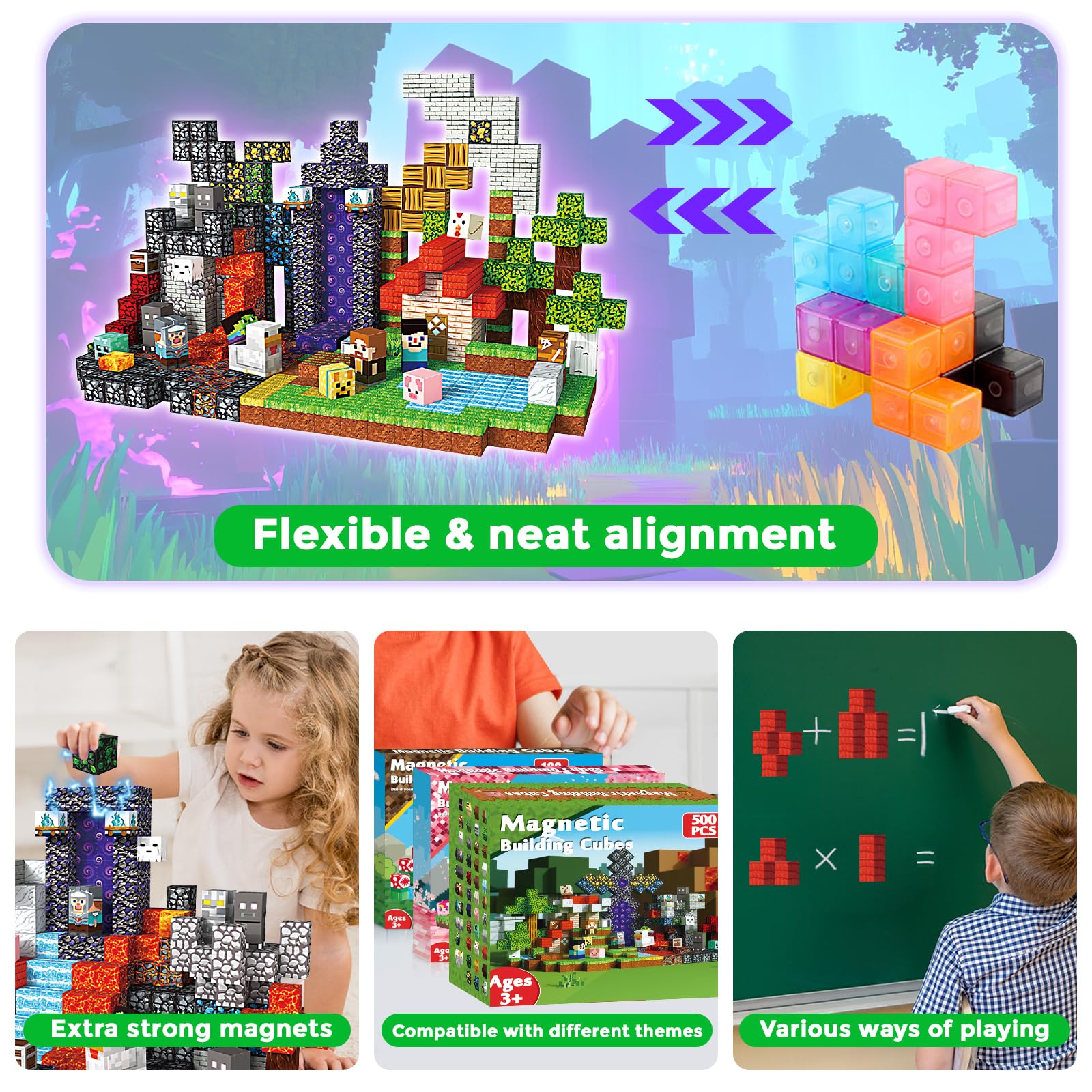 - Rich Cubes Collection】Dive into a universe of magnetic toys designed for budding builders. Including 500 magnet cubes with 3 themes and 12 characters. Our Idea booklet is providing storyline and beautiful patterns, kids can either follow our patterns or create with their own imaginations!