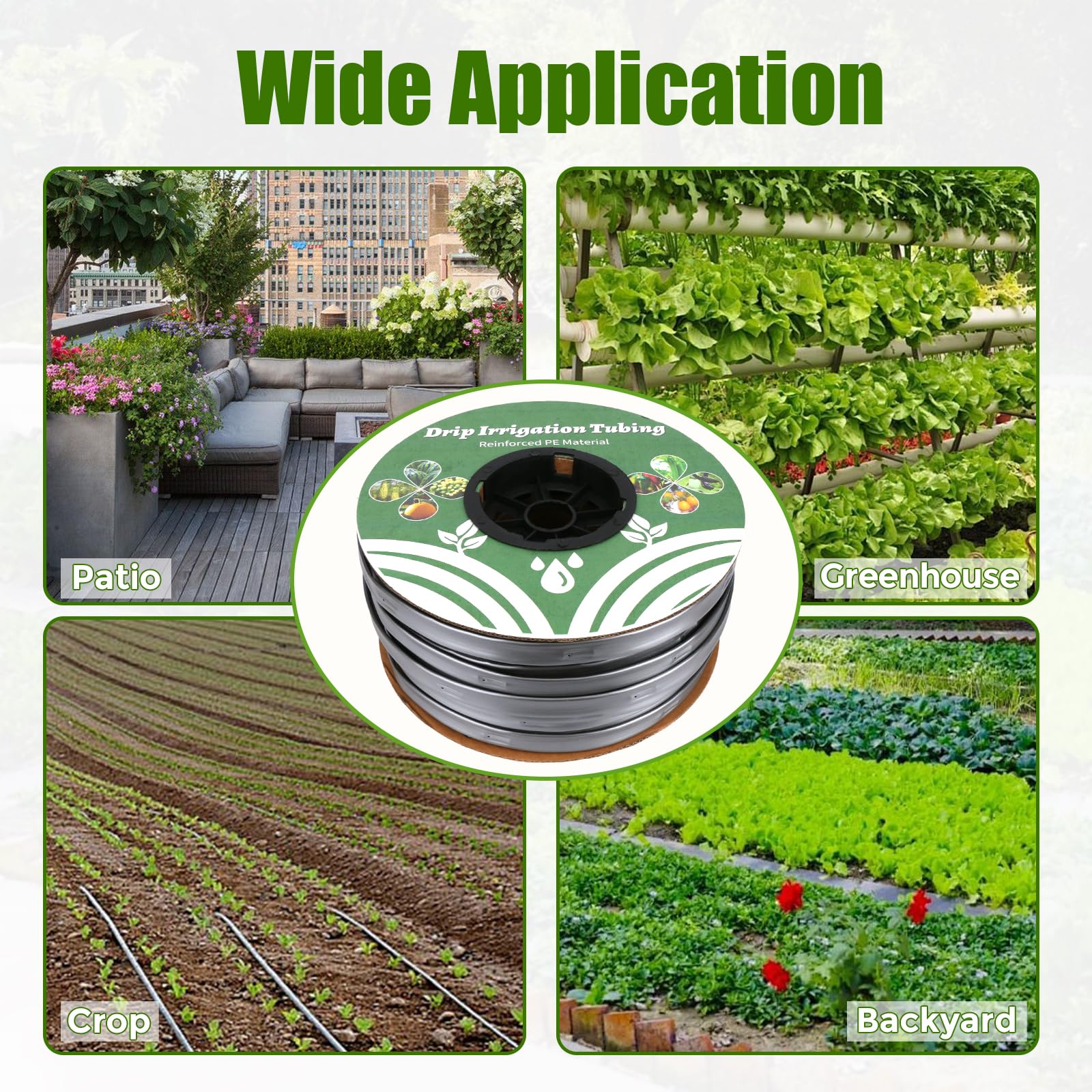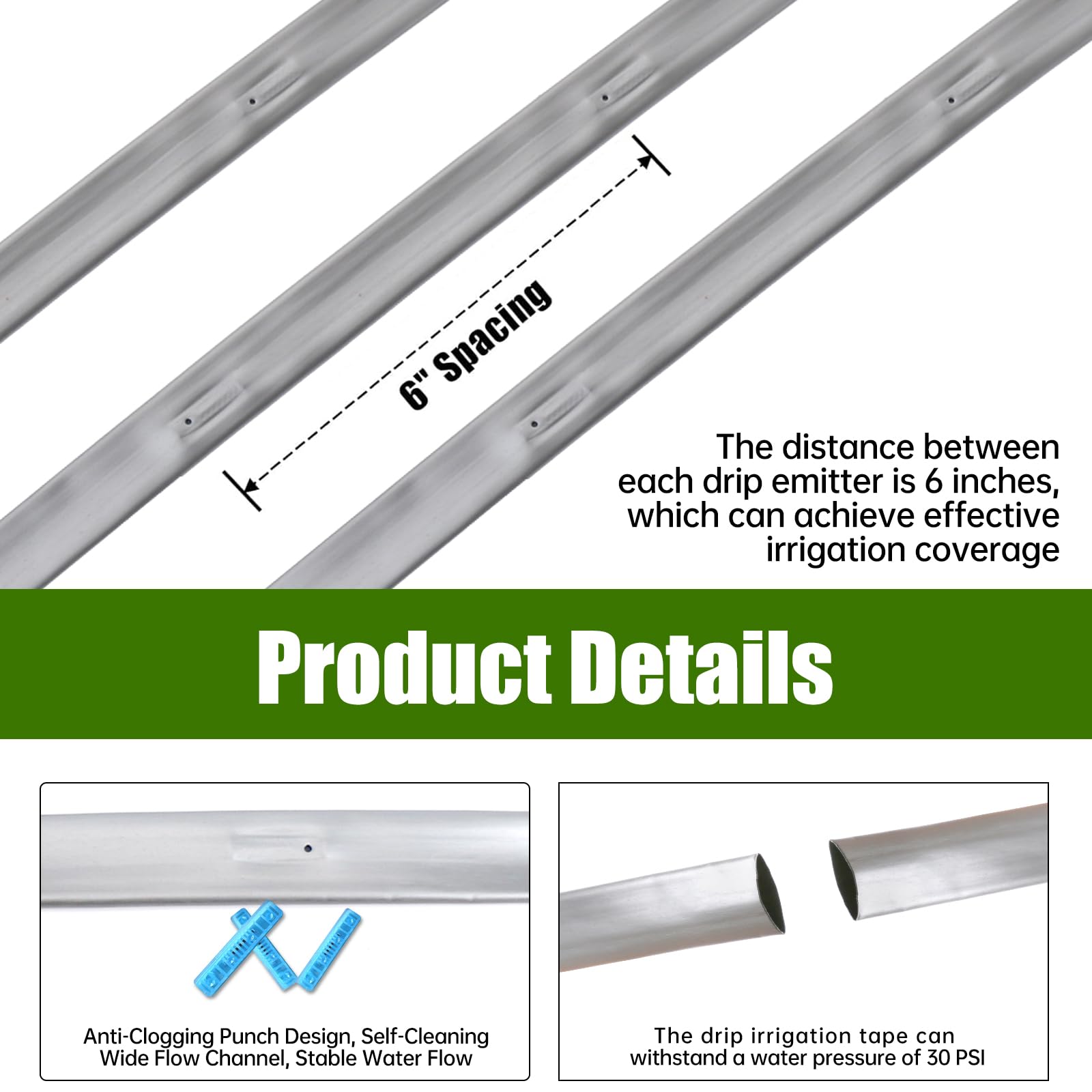 - High Quality Material: Made of enhanced PE material, the drip irrigation tape features excellent tensile resistance, explosion resistance, wear resistance, cold resistance, UV resistance, aging resistance, good anti-clogging performance, uniform water outlet, and a long service life. It can withstand a water pressure of 30 PSI