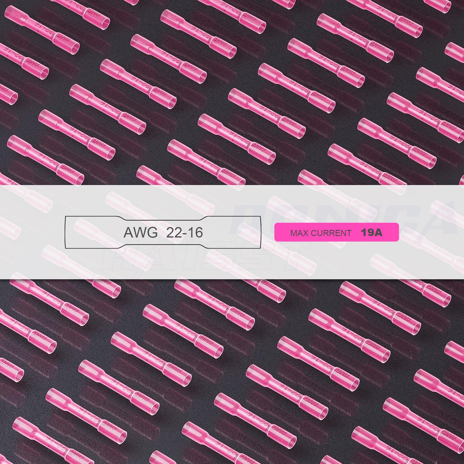 - GREAT VALUE:The package includes 500PCS Red(22-16) heat shrink butt connectors. It is an ideal choice for factories, enterprises, schools, or stores where butt connectors are used frequently. Haisstronica waterproof wire connectors comply with ROHS, ISO 9001:2008, SGS, and CE standards.