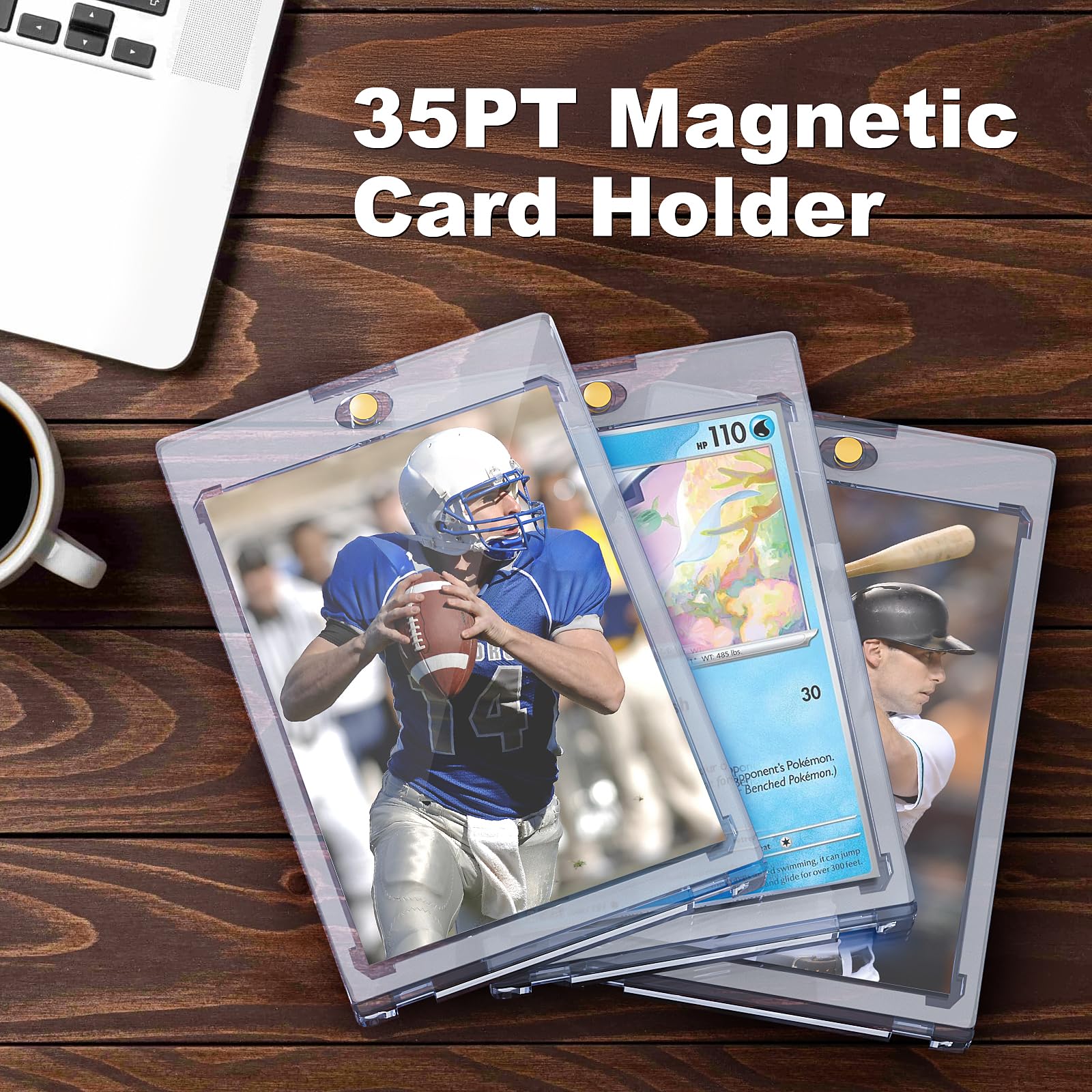 50ct Magnetic Card Holder for Trading Cards, 35pt Ultra Clear Baseball Card Holder, Hard Plastic Protectors for Sports and Game Cards