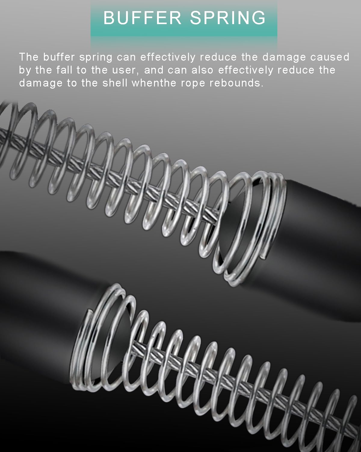 - 【BUFFER SPRING】:The buffer spring can effectively reduce the damage caused by the fall to the user, and can also effectively reduce the damage to the shell when the rope rebounds.