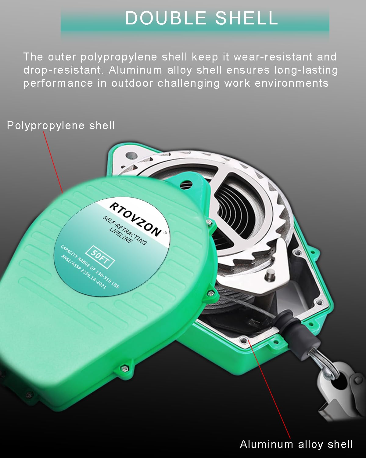 50FT Self Retracting Lifeline Fall Arrest RTOVZON Fall Protection Steel Wire Rope Heavy Duty Retractable Lanyard, Safety Lanyard, Roofing Lifeline, SRL