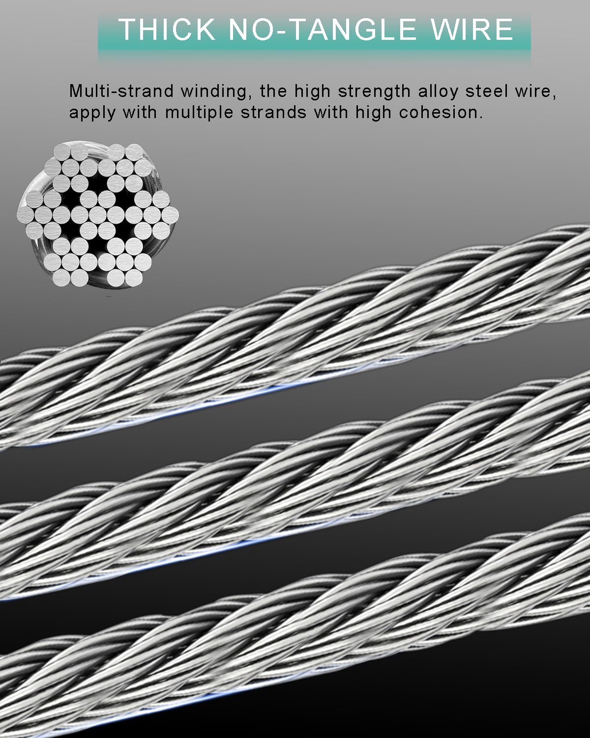 - 【THICK NO-TANGLE WIRE】: Multi-strand winding, the high strength alloy steel wire 50FT, apply with multiple strands with high cohesion.