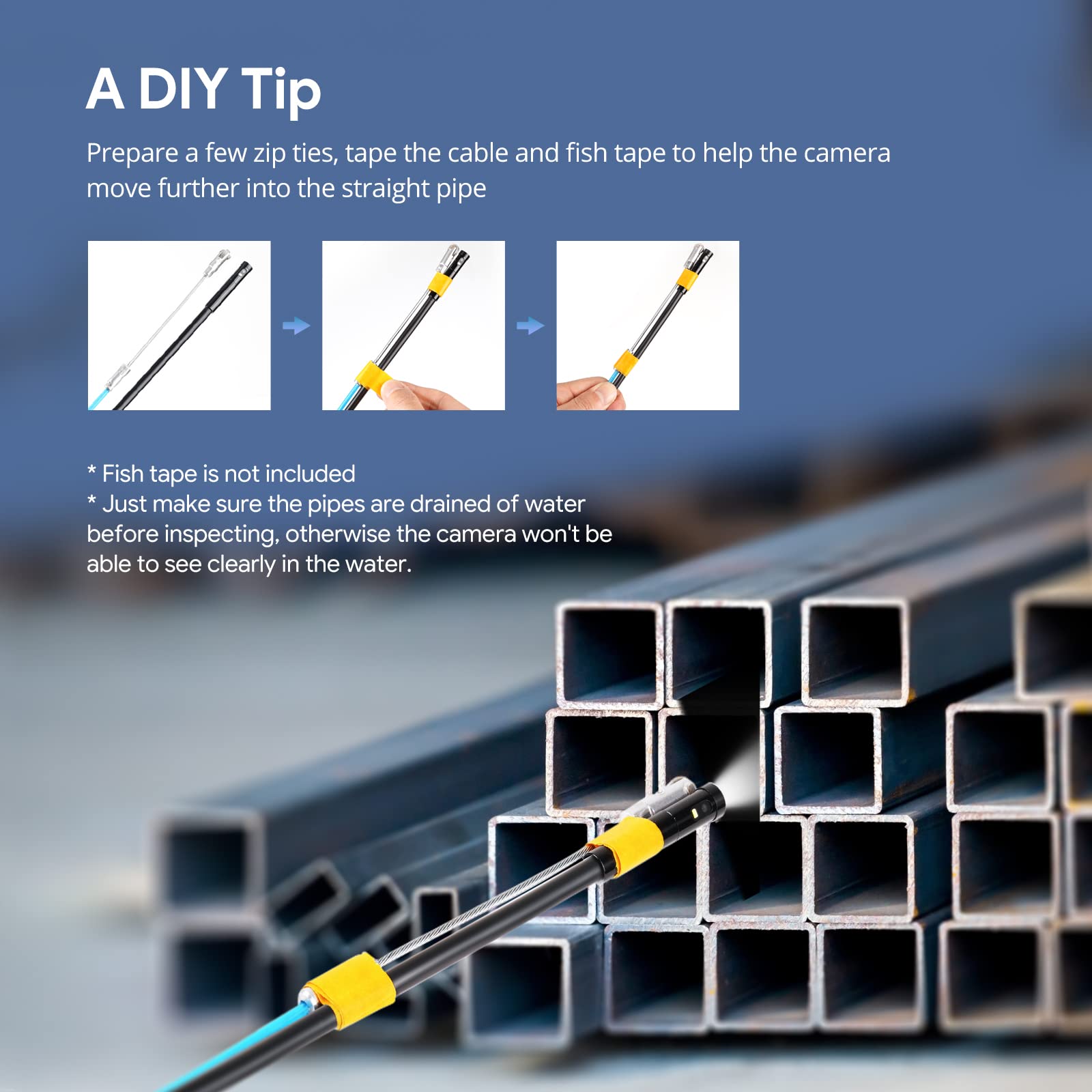 - 【Durability and water resistance for tough environments】This DEPSTECH endoscope features a 50ft semi-rigid cable with 6 bright LEDs, providing a clear and illuminated field of view for inspecting pipes, equipment, and machinery without obstruction. The dustproof and IP67 waterproof probe ensures reliable performance even under harsh conditions