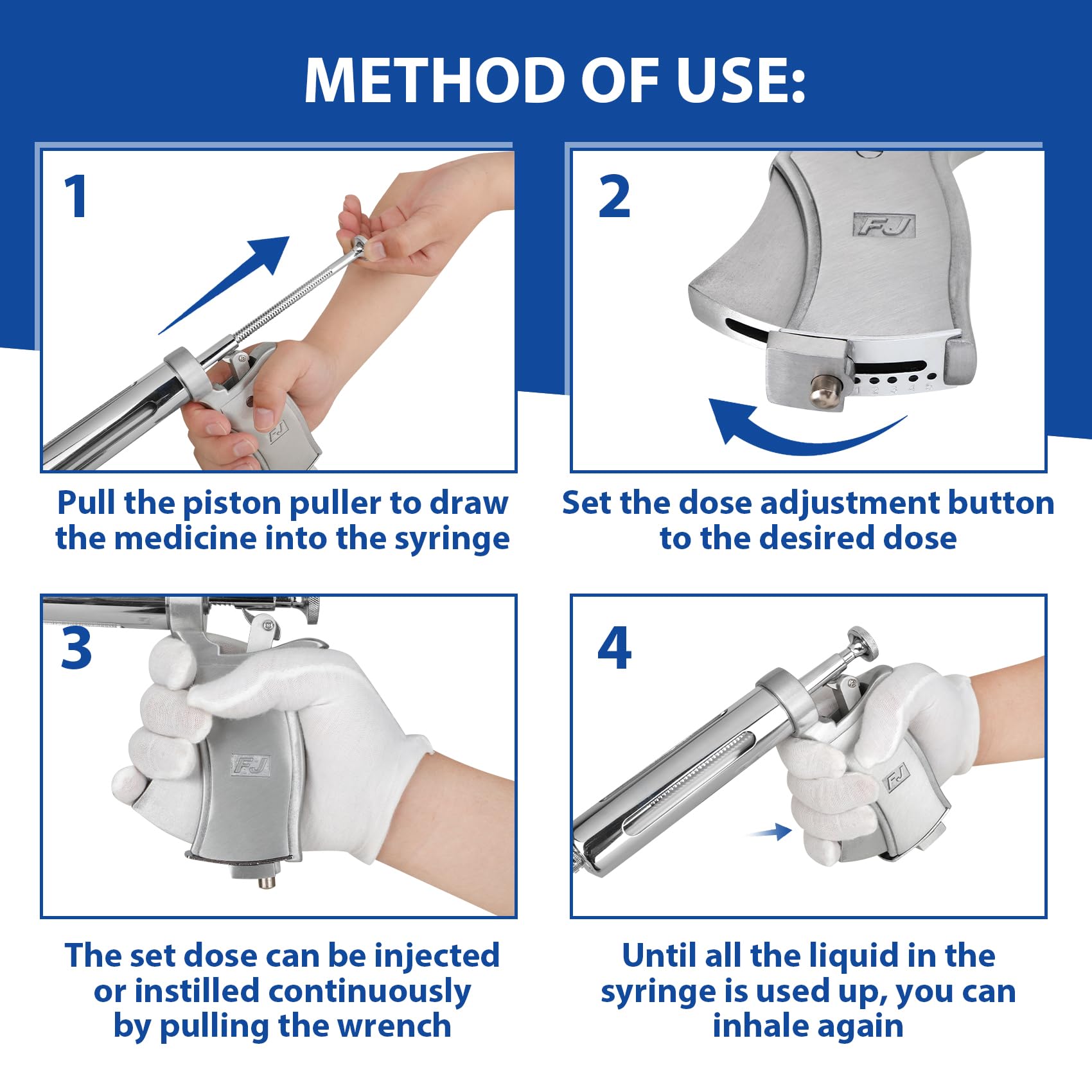 - Durable and Easy to Use: The stainless steel plunger rod is durable and prevents rust, ensuring long-lasting performance. The syringe easily draws in 50ml of fluid with a simple pull of the handle. Once the desired dose (1ML/2ML/3ML/4ML/5ML) is set, it allows for continuous syringes, simplifying the entire process.