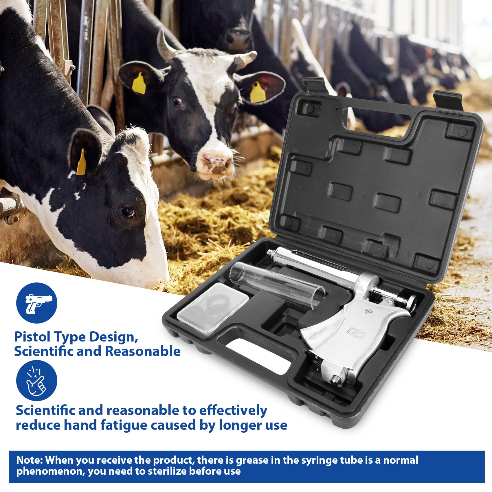 - VERSATILE USE: The 50ML Continuous Livestock Syringe is designed for the syringing of liquids into poultry and livestock for horses, sheep, cows, pigs, chickens, ducks and more. It is an essential tool for agricultural farms, ranches and livestock facilities.