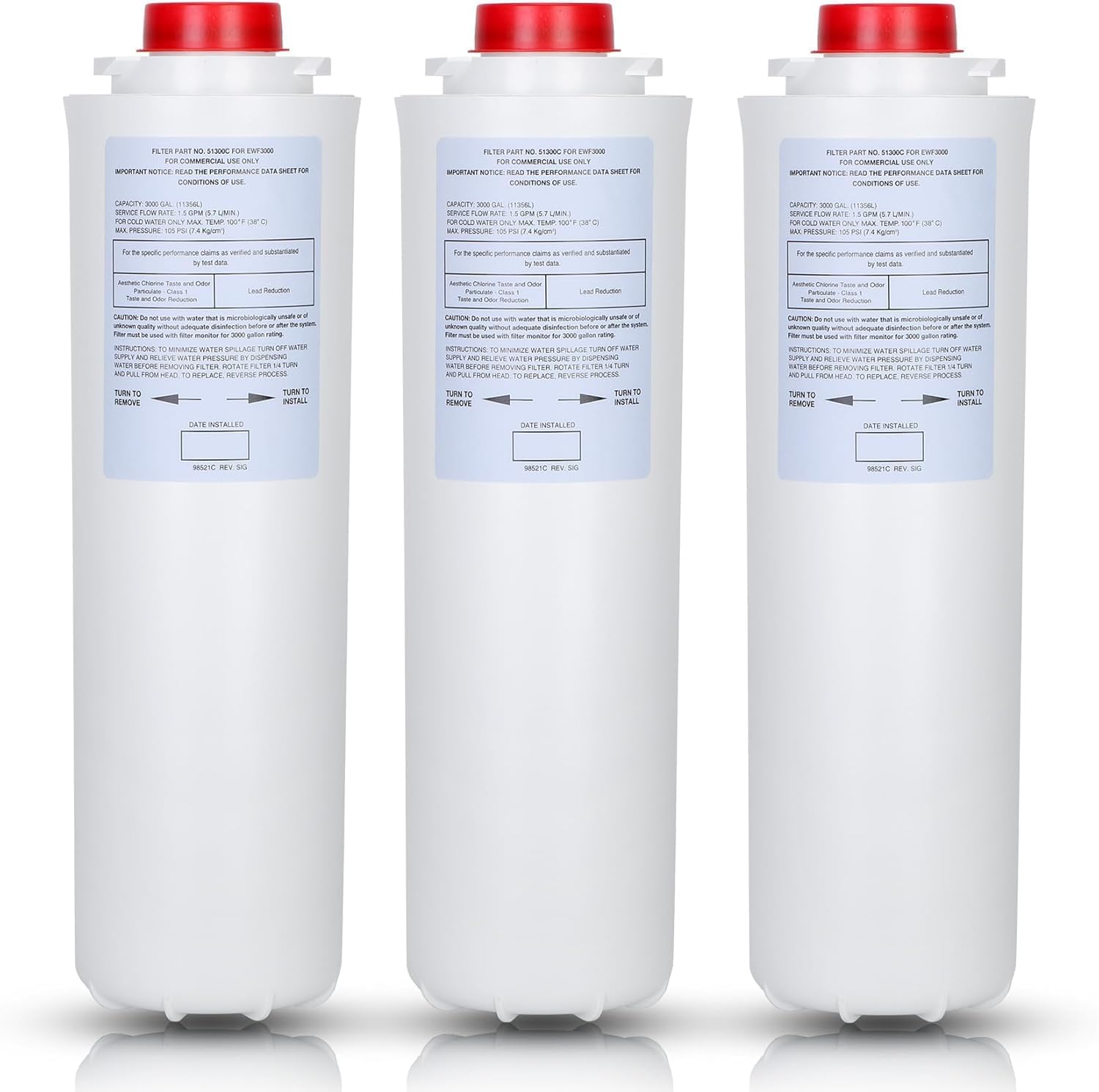51300C Replacement (3 Packs-No Chip),Compatible with EzH2O Filter Replacement Bottle Station High Capacity 3000 Gallon,Replacement EWF3000 for 51300/C ERF750, 51299C, 55898C (3)