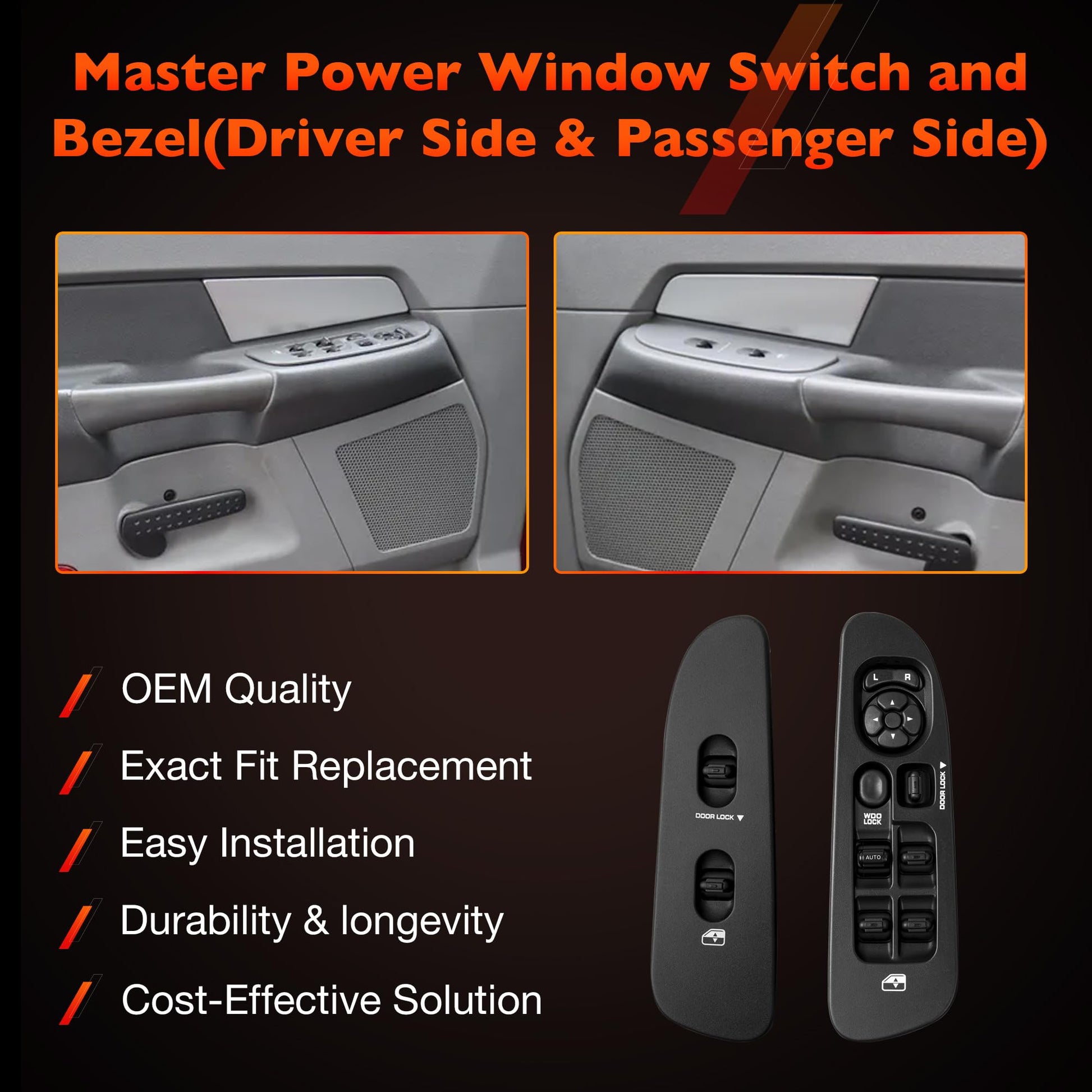 56049805AB Master Power Window Switch and Bezel(Driver & Passenger Side) Compatible with 2002-2009 Dodge Ram1500 2500 3500,2001-2004 Dodge Dakota,2001-2003 DodgeDurango,2005-2009 Sprinter 2500(Black)