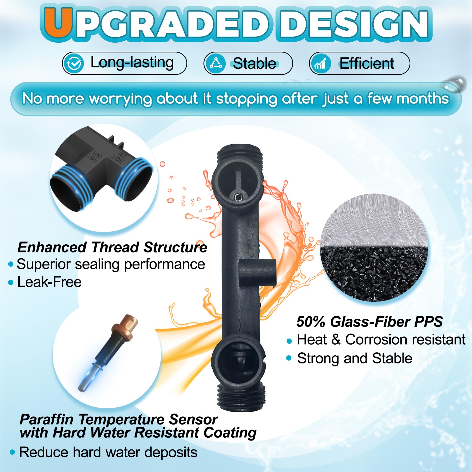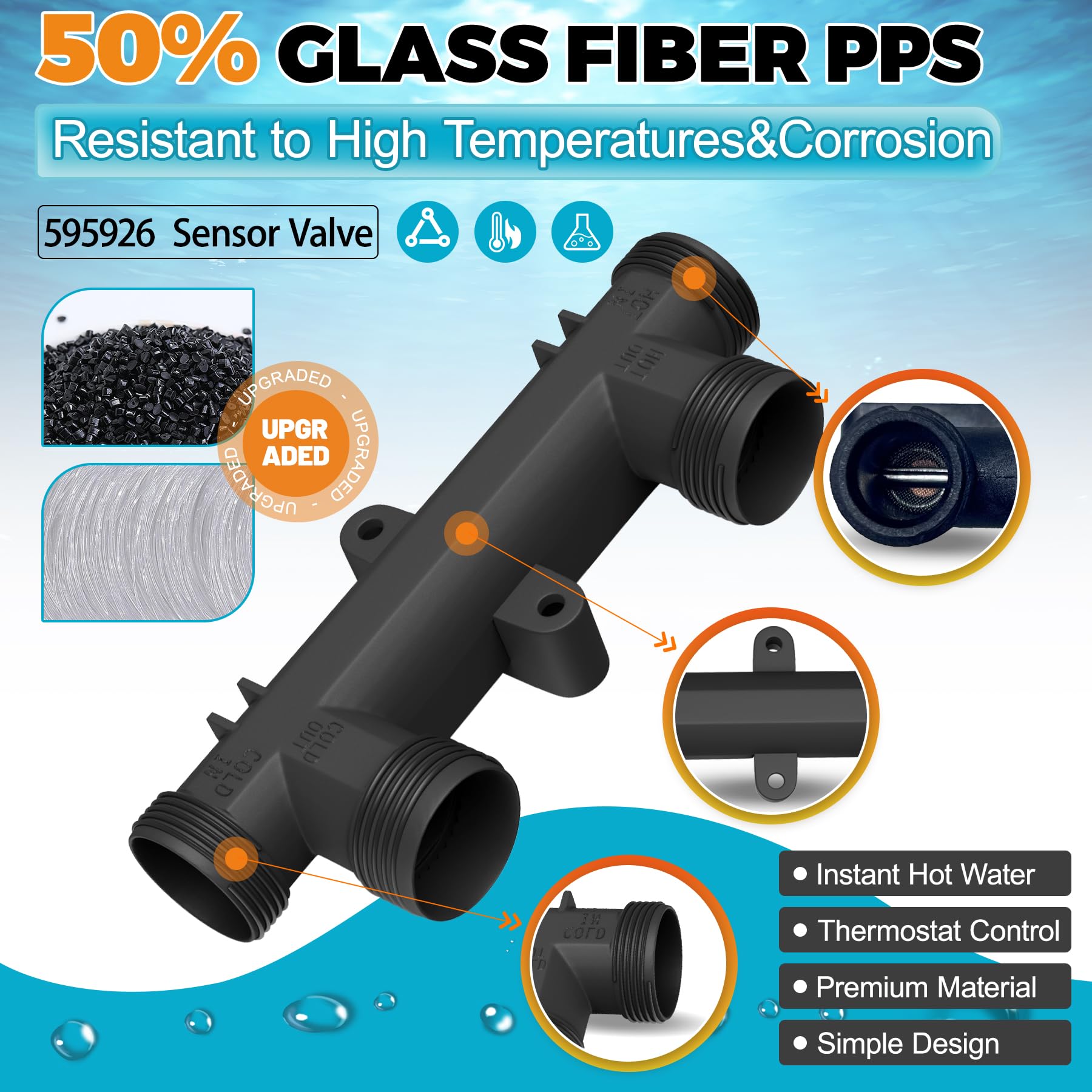- Upgraded Material: The 595926 bypass valve is made of PPS plastic with 50% glass fiber content, which has extremely strong high temperature resistance and corrosion resistance. The enhanced strength and rigidity can withstand the pressure and impact of hot water flow, ensuring the continuous operation of the sensor valve. In addition, this sensor valve adopts a high-strength threaded structure combined with stronger stability of the material, which can effectively reduce the risk of leakage.
