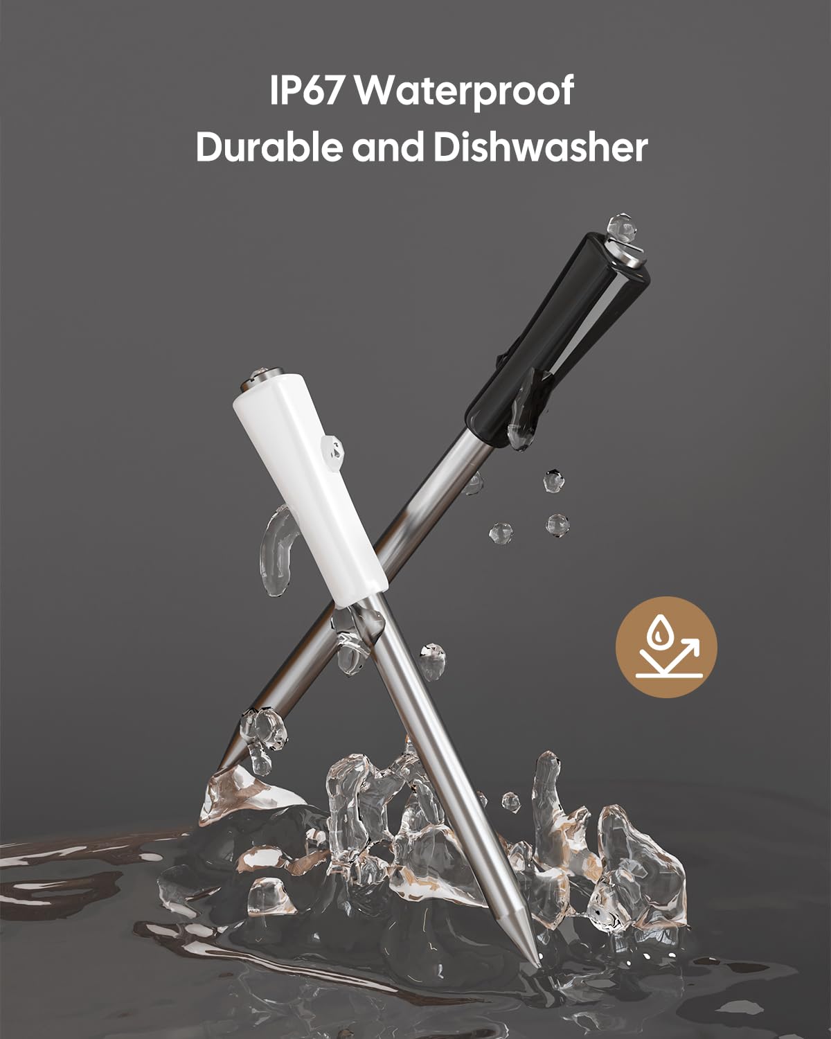 - 2.Meet The Diversity Of Cooking Needs with One long Probe and One short Probe: The Wifi bluetooth meat thermometer wireless comes with dual meat probes. The long probe is suitable for large pieces of meat, while the short probe is perfect for smaller cuts, providing versatility in your cooking.