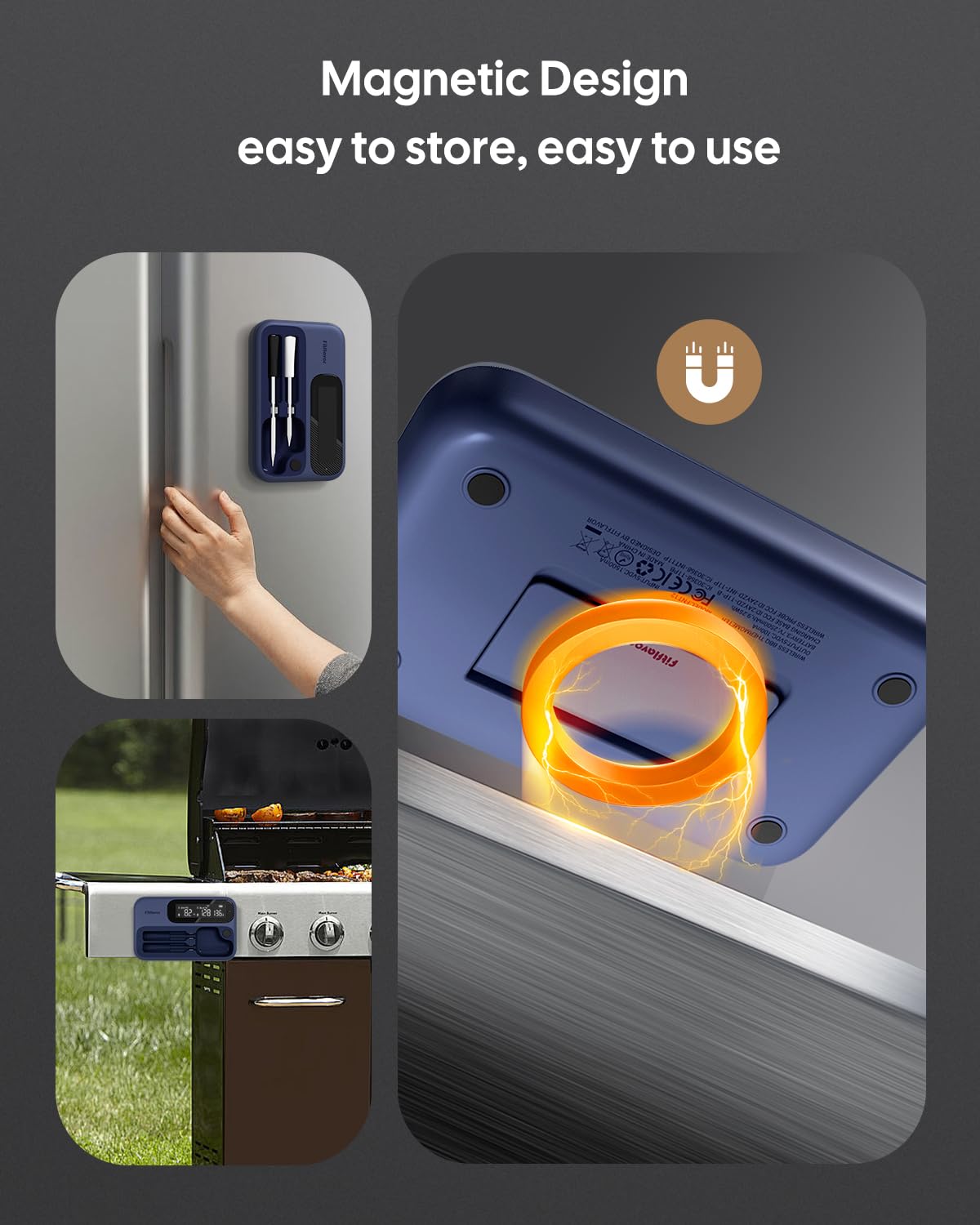 5G WiFi Wireless Meat Thermometer for Smoker Bluetooth, Dual Probes, Fitflavor Bluetooth Meat Thermometer for Grill BBQ, Smart Meat Probe for Food Cook Oven Grilling, Rechargeable