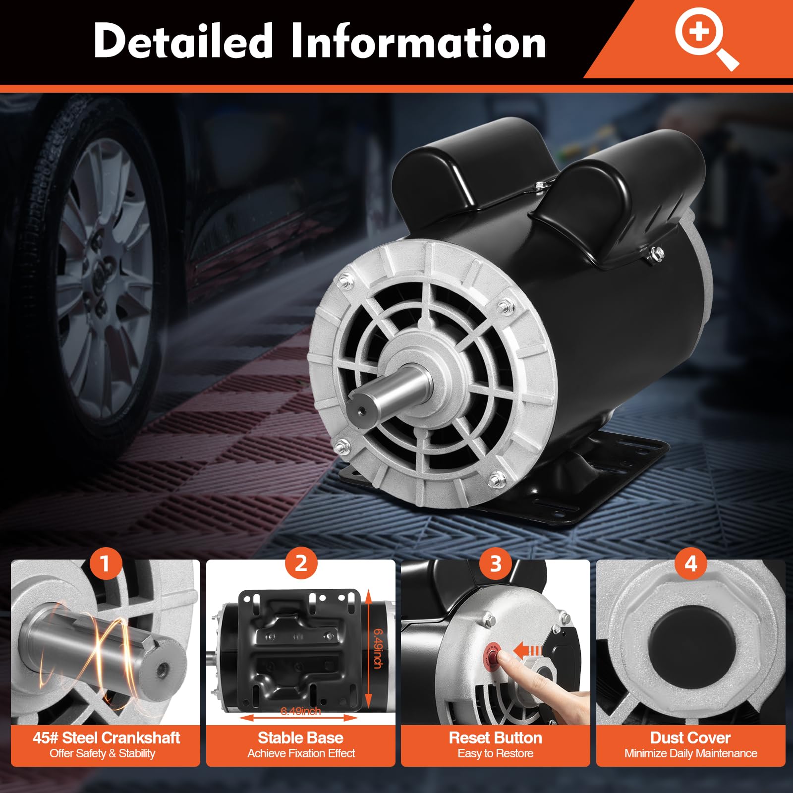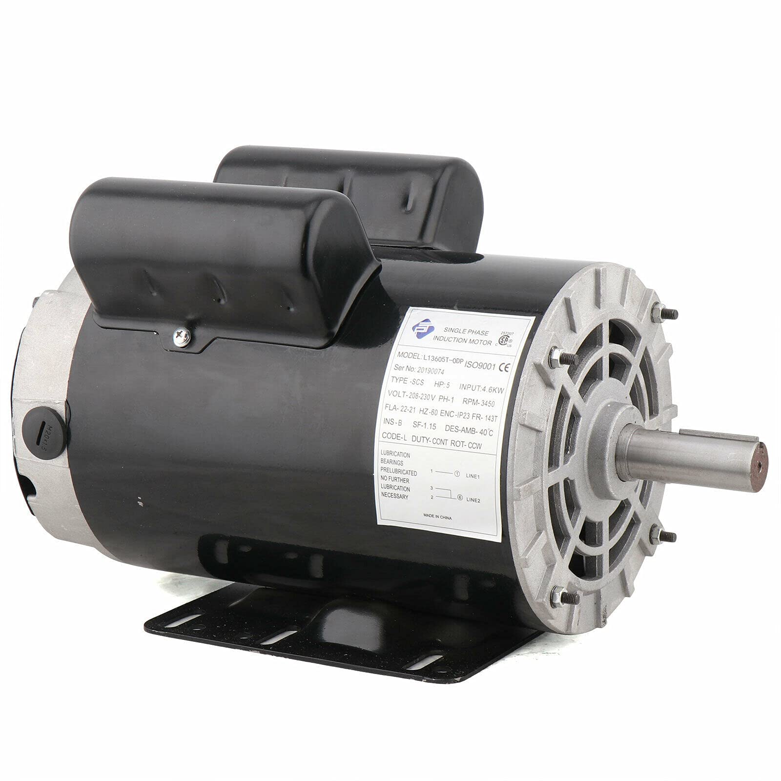 5HP Single Phase 143/5T Frame Electric Air Compressor Electric Motor 7/8 inch Shaft 3450RPM 208-230 Volts 60HZ