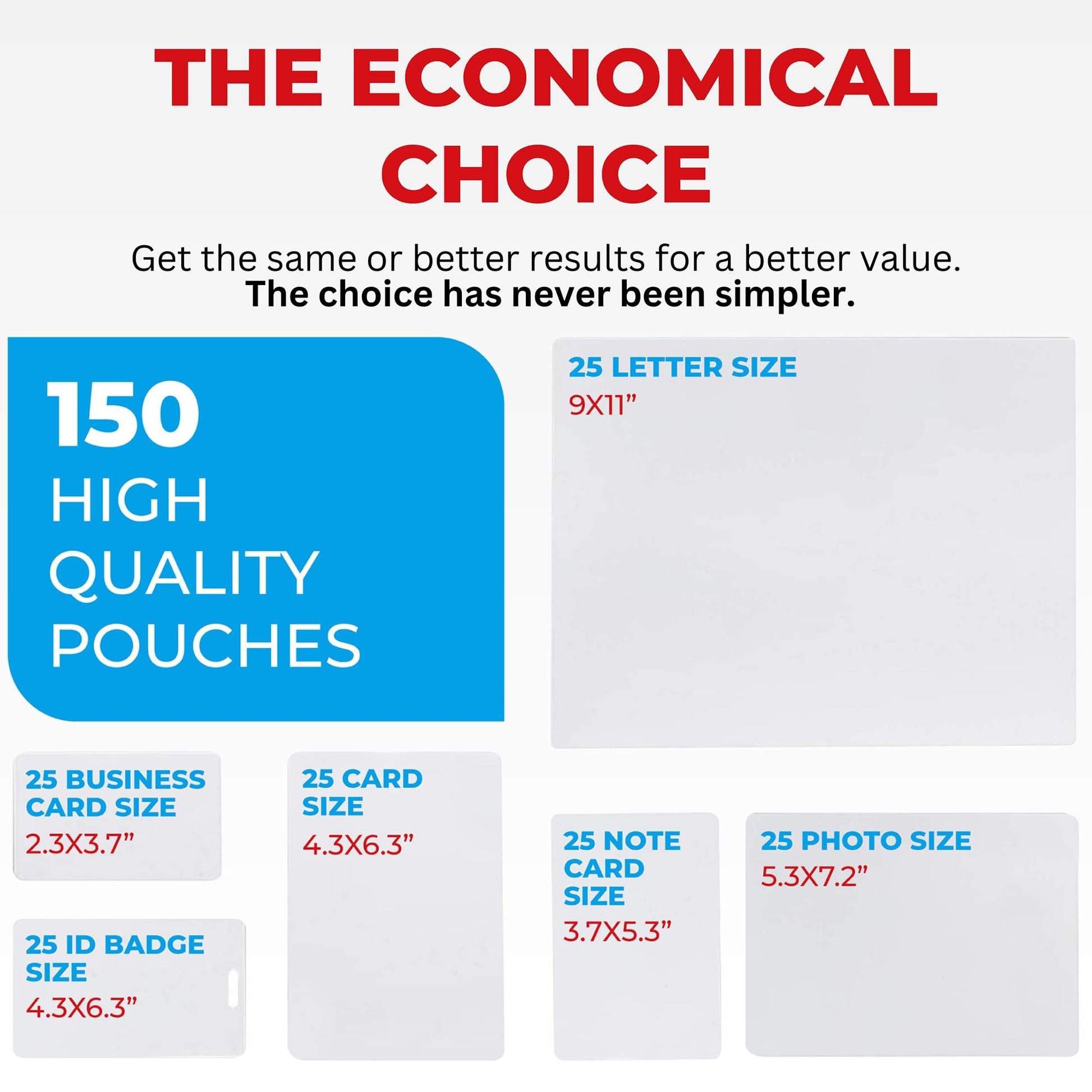 5MIL Thermal Laminating Pouches (150 Count) | Letter, Photo, Card, Notecard, ID Badge and Business Card Sizes | Dry-Erase Friendly Sheets, Compatible with Laminators | Crystal Clear Laminated Finish