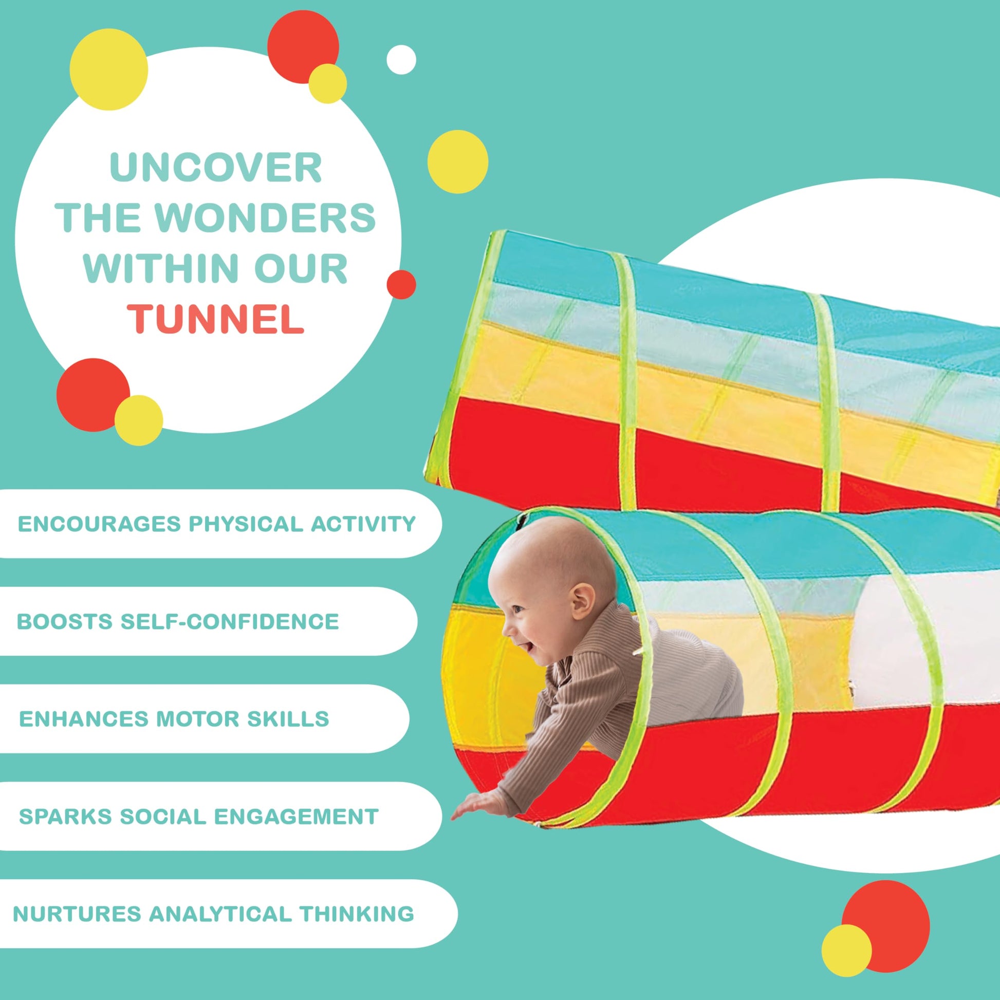 - EASY SETUP & PORTABLE: The entire baby jungle gym ball pit tunnel set pops up and sets up in seconds. The tunnels for kids to crawl through connect effortlessly to the ball pit with secure fasteners, and when playtime is over, fold it away into the included compact carrying case.