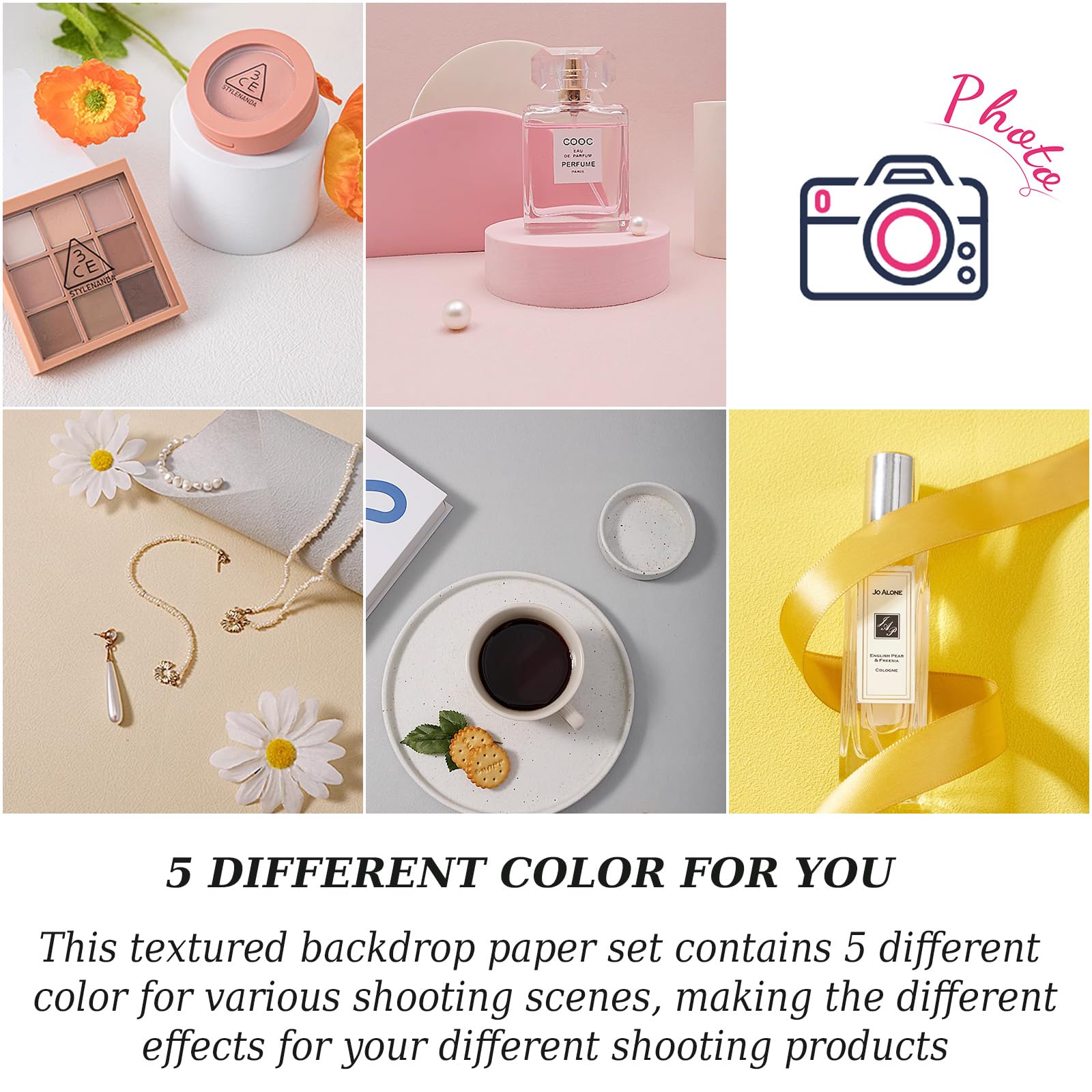 - ★ Backdrop Package - 5 Piece set Including pink, white, light coffee, yellow, sliver grey(70x100cm/28x39in); Fit for Portrait,Costume,Jewelry or any other Object Photography Video Production and Digital Photography, especially for commodities which are sold online