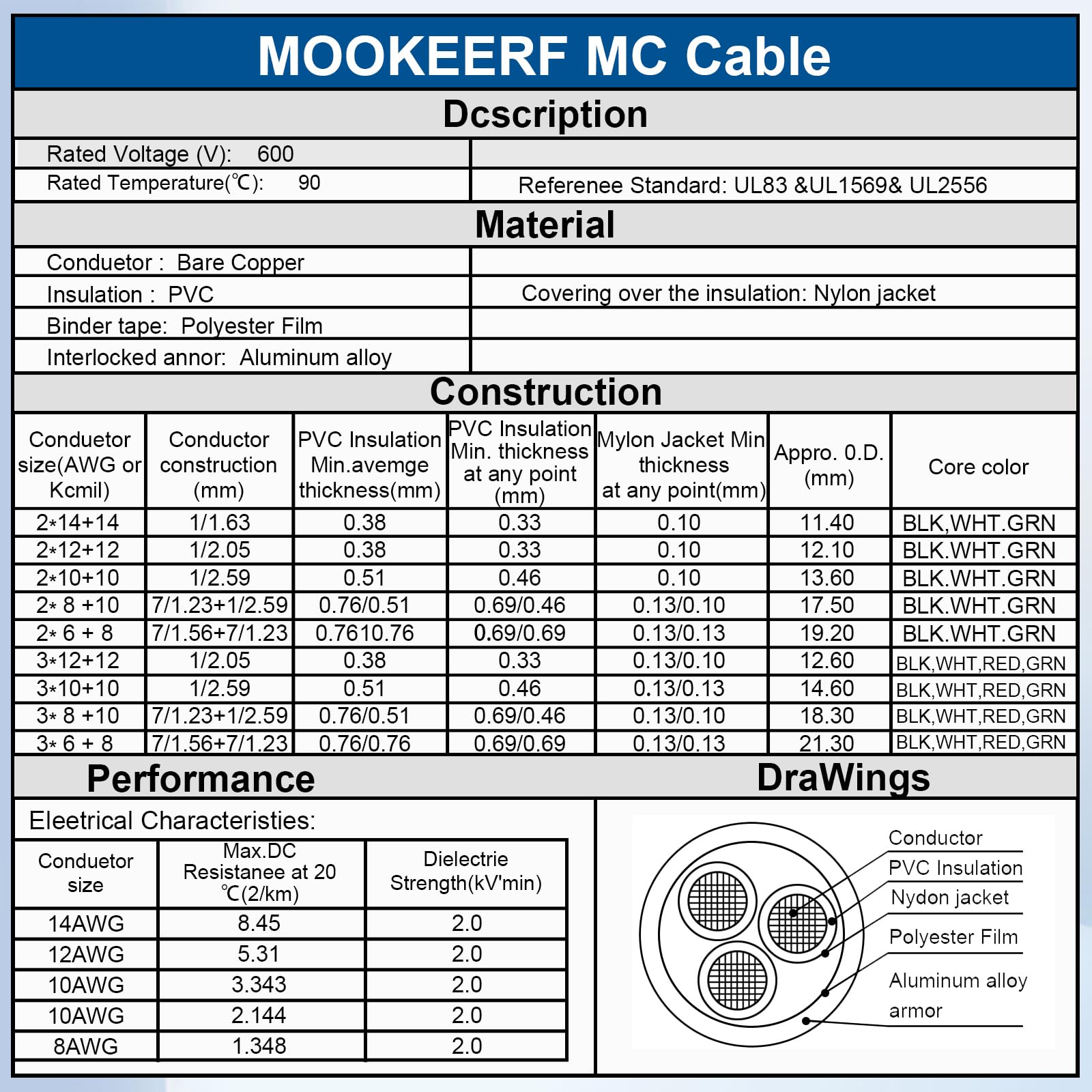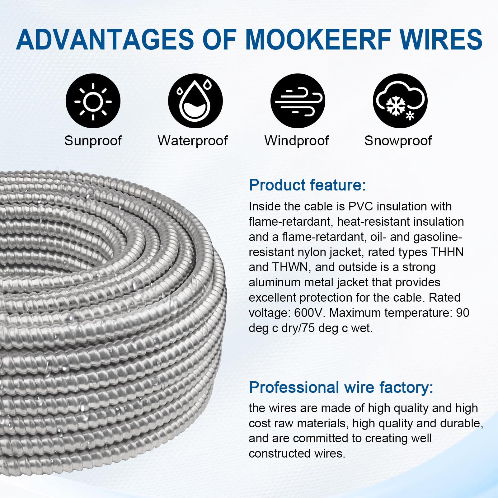 - [WIDELY USED]: MOOKEERF MC cables have multiple layers of protection and a wide range of applications for indoor and outdoor, commercial, industrial, and residential buildings