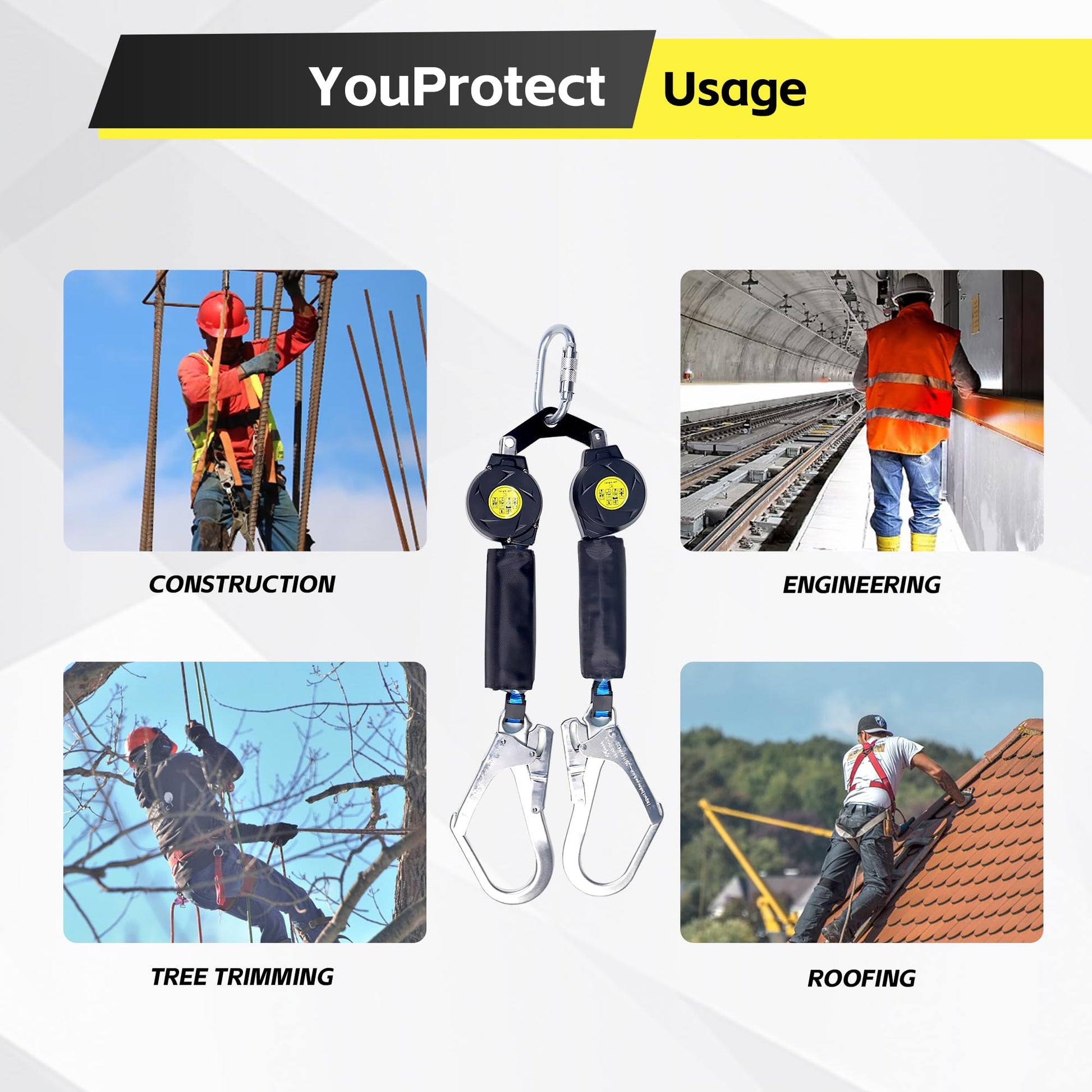 - WIDELY USES - Our dual leg self-retracting lifeline can be paired with different safety harnesses; Can be used for climbing on a roof or ladder, construction, roofing work, gutter cleaning, installation, inspection, maintenance and many other work scenarios