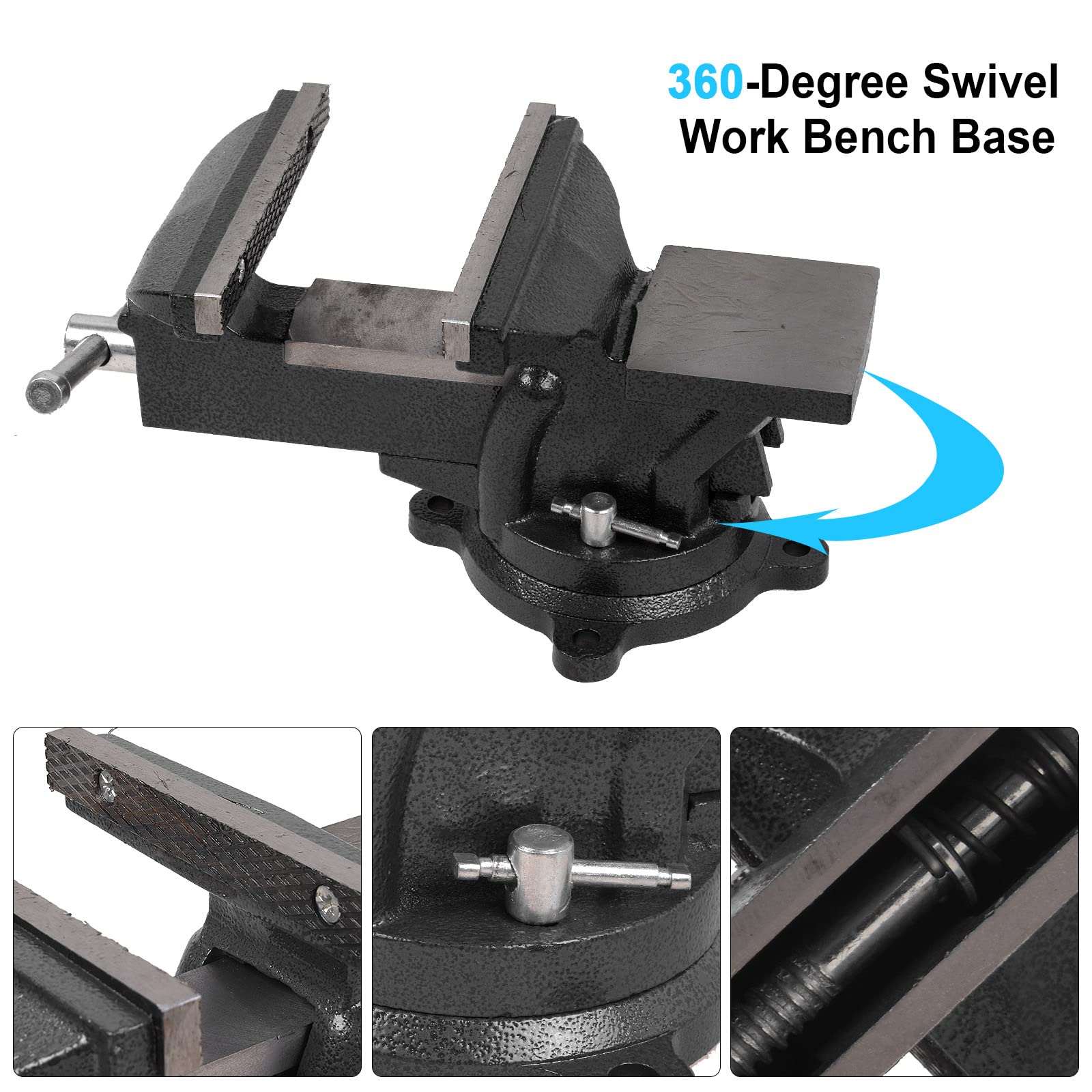 6" Heavy Duty Bench Vise, Pipe Vise Bench Vices with Anvil Swivel Table Top Clamp Locking Base, Double Swivel Rotating Vise Head& Body Rotates 360°-Black