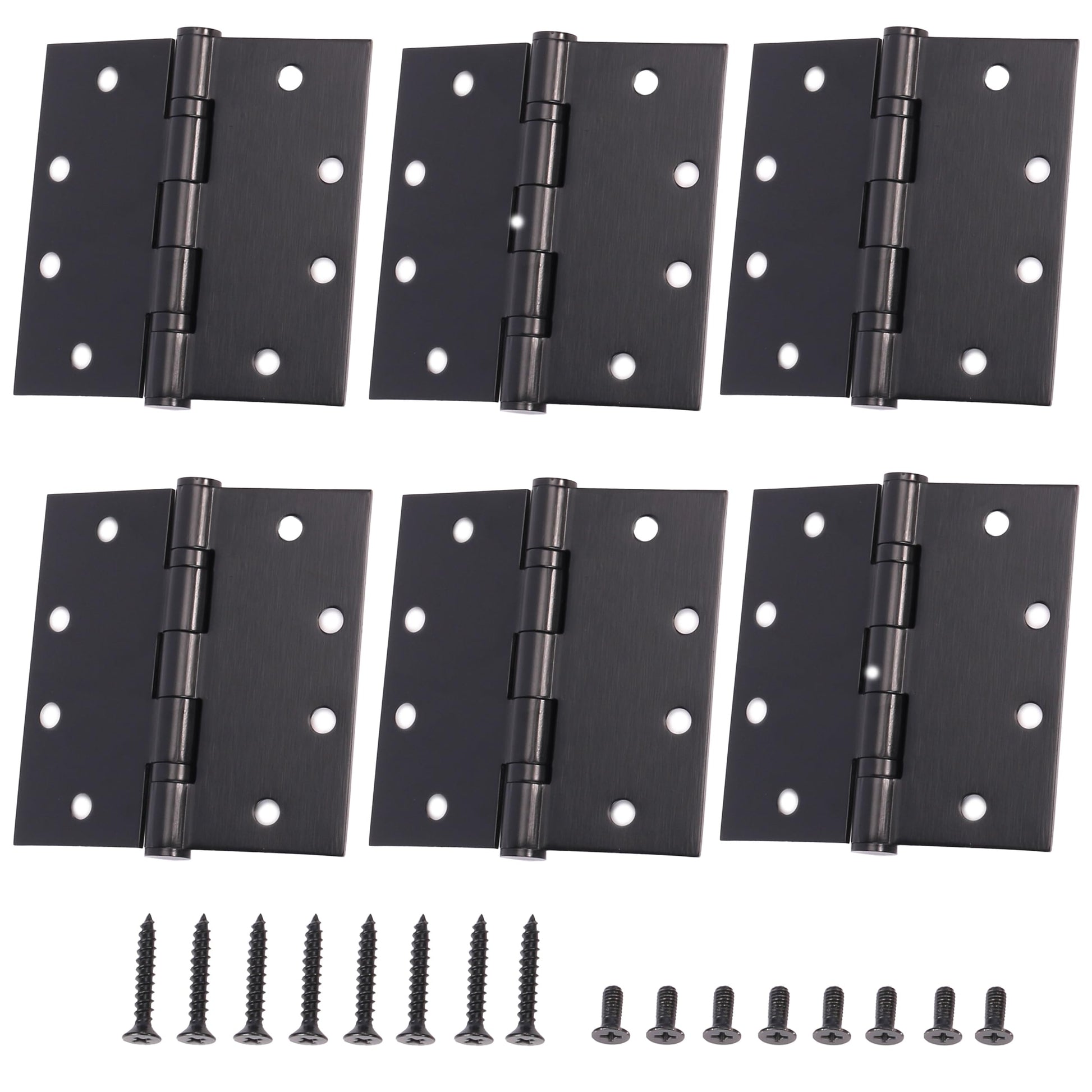 6-Pack 4.5 X 4.5 inch Black Heavy Duty Commercial Door Hinges Thickened, Silent Plain Steel Ball Bearing Door Hinges, Thickness 3 mm Stainless Steel Square Corners with 48 Screws