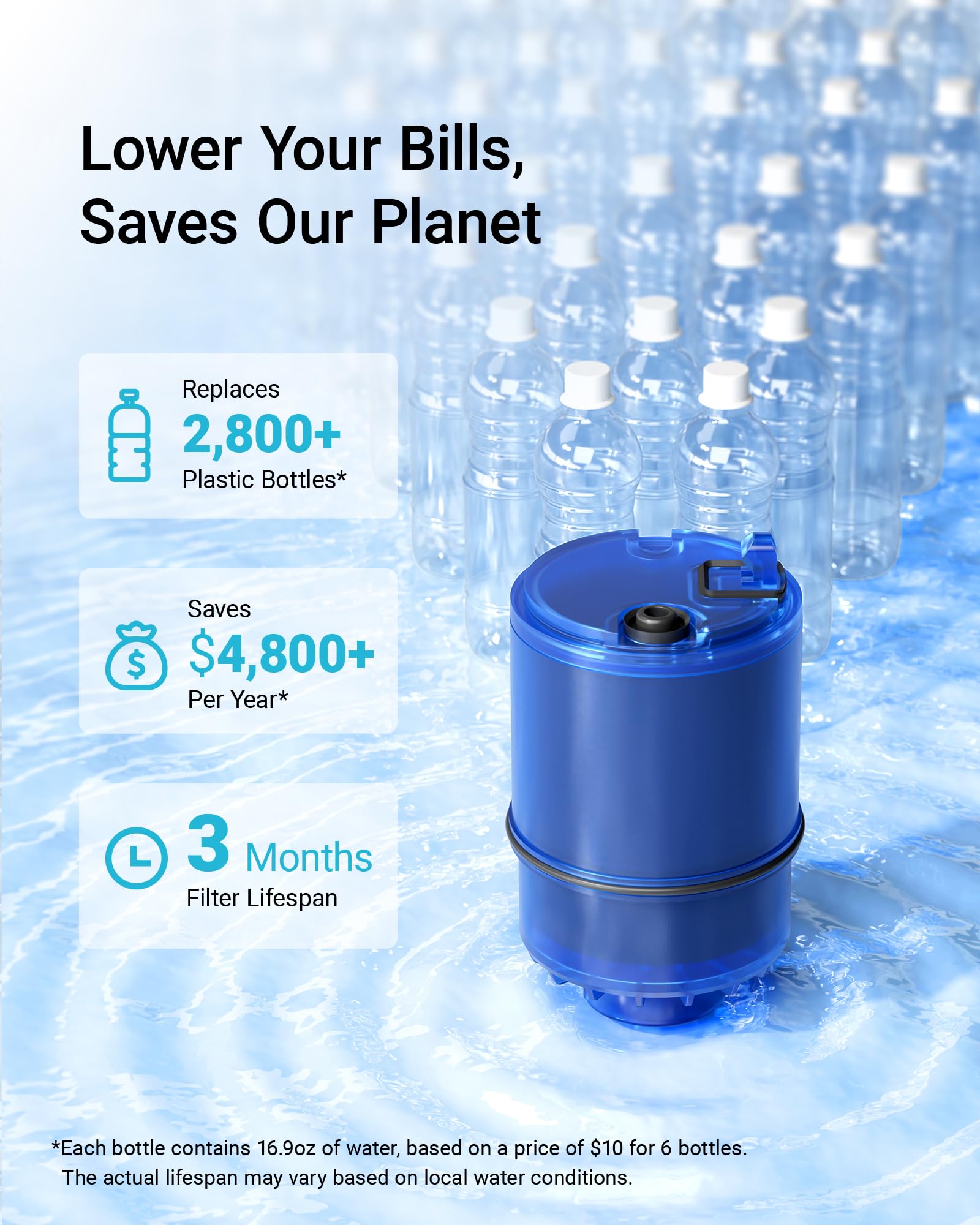 - Note: Please soak the filter in clean tap water for 3 minutes to flush the filter and release the bubbles before using.