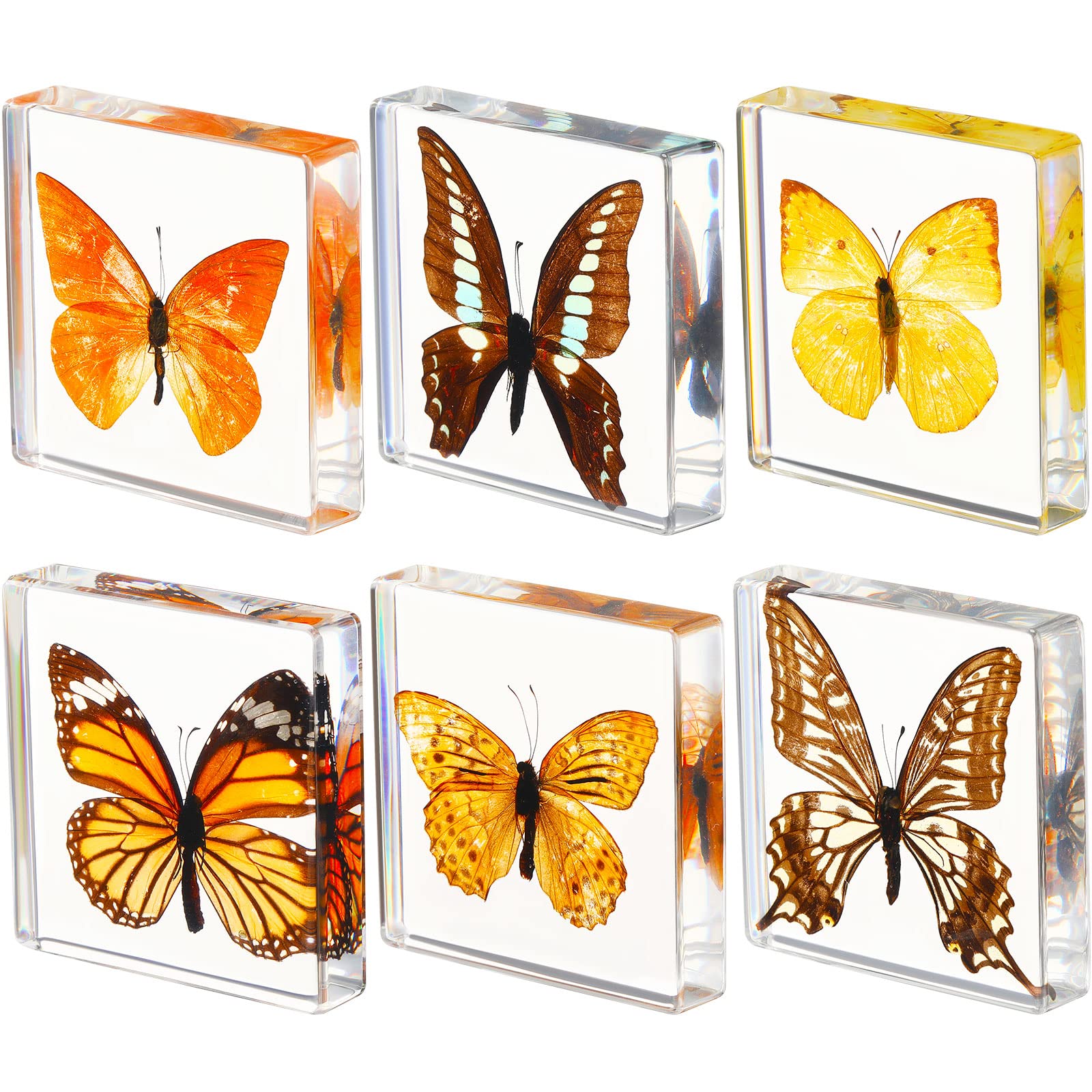 6 Pcs Real Butterfly Specimen Paperweight Assortment Framed Butterfly Taxidermy Resin Collection Display Science Toys for Home Office School, 6 Styles