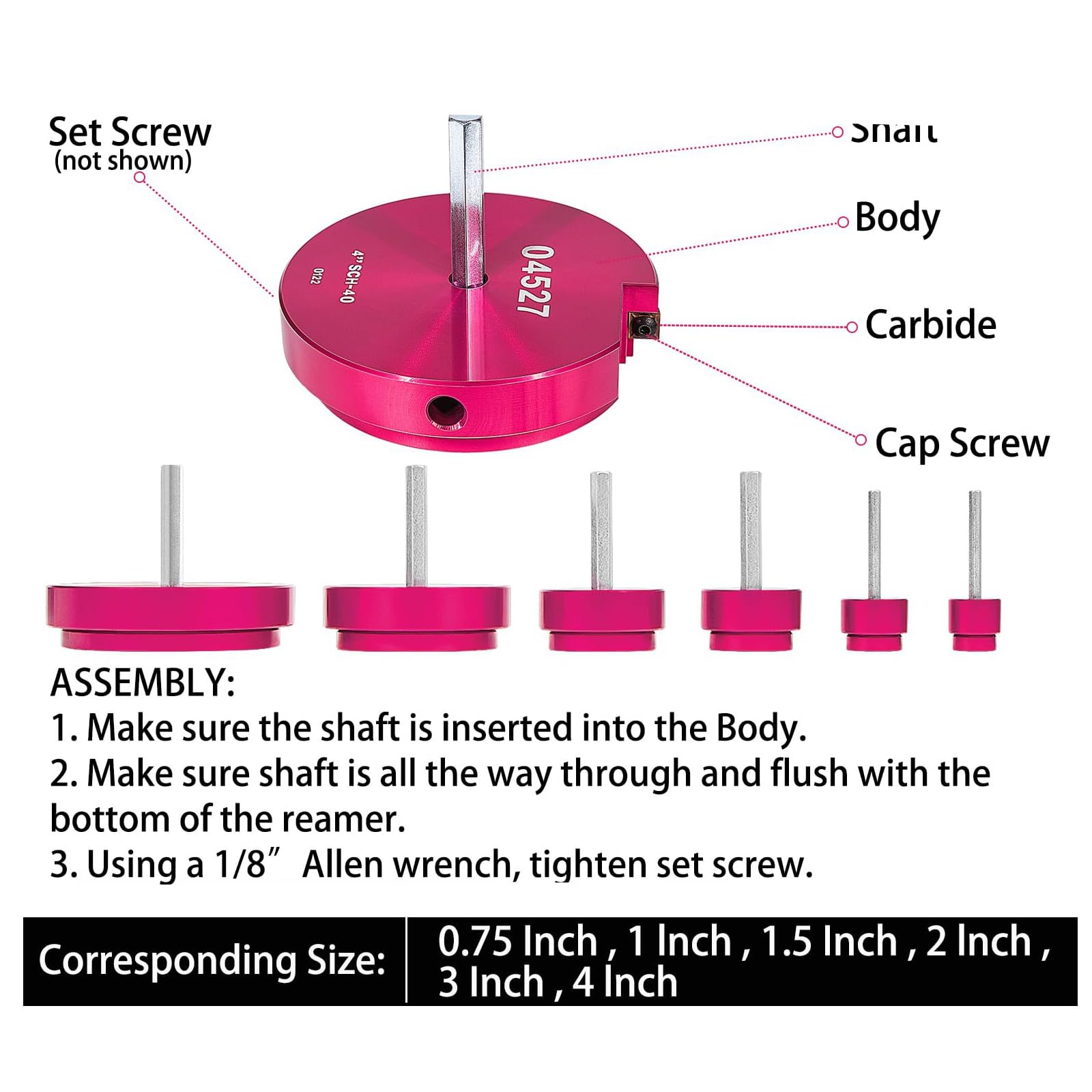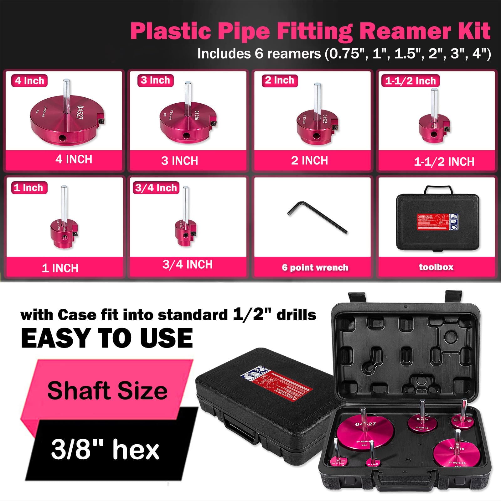 - Complete 6-Piece Reamer Set: Includes reamers for 0.75", 1", 1.5", 2", 3", and 4" pipe sizes, compatible with most standard 1/2" drills. Ideal for professional plumbers and DIY enthusiasts alike.
