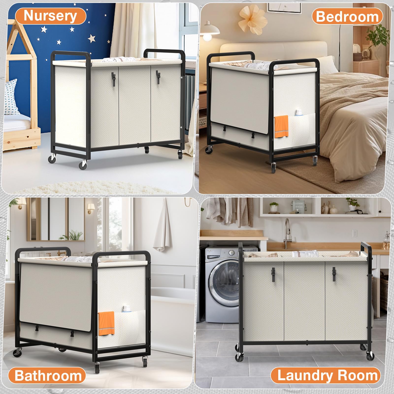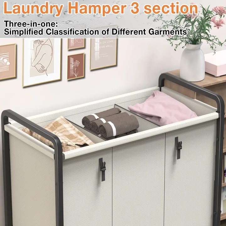 - 【Enhanced Stability & Durability 】Built with reinforced steel frames and sturdy crossbars, this 3-section laundry hamper prevents bending and sagging, supporting up to 150 lbs effortlessly. The durable laundry basket with wheels keeps clothes neatly organized while offering unmatched stability—perfect for heavy loads and daily use