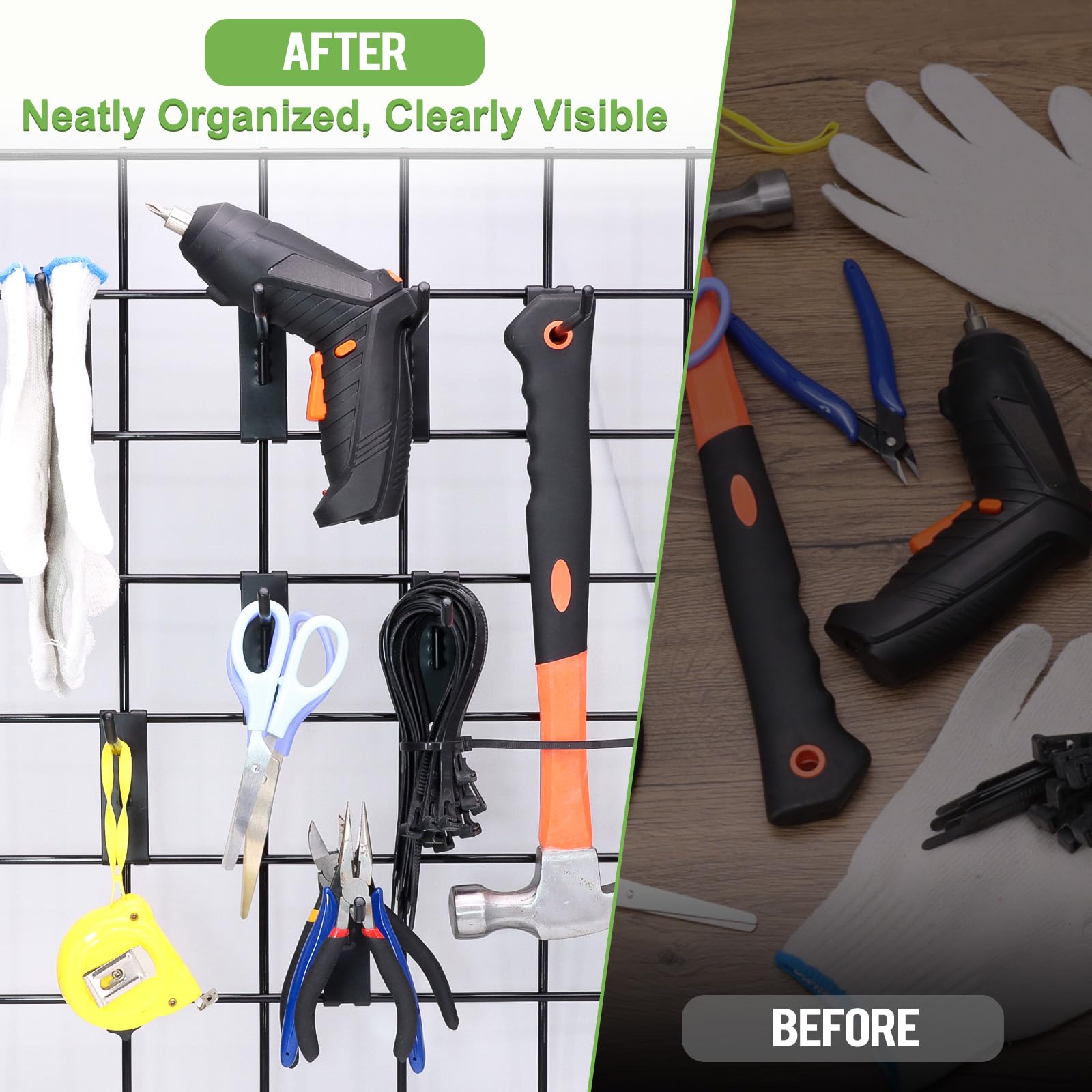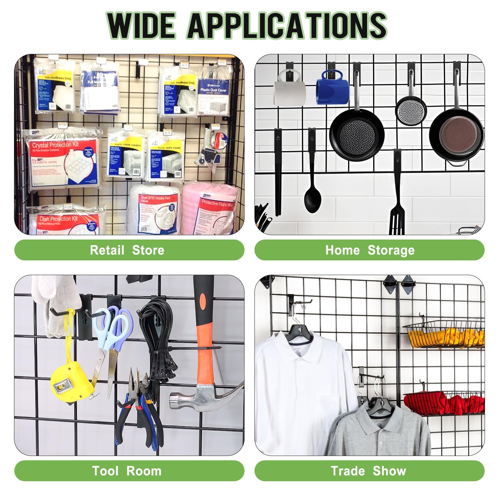 - Grid Wall Hook Multipurpose Utility: Gridwall hooks can enhance organization and convenience in retail stores, flea market, garages, or home storage. Whether you're hanging clothing, tools, accessories, or decor, our gridwall hooks help keep your space tidy and efficient