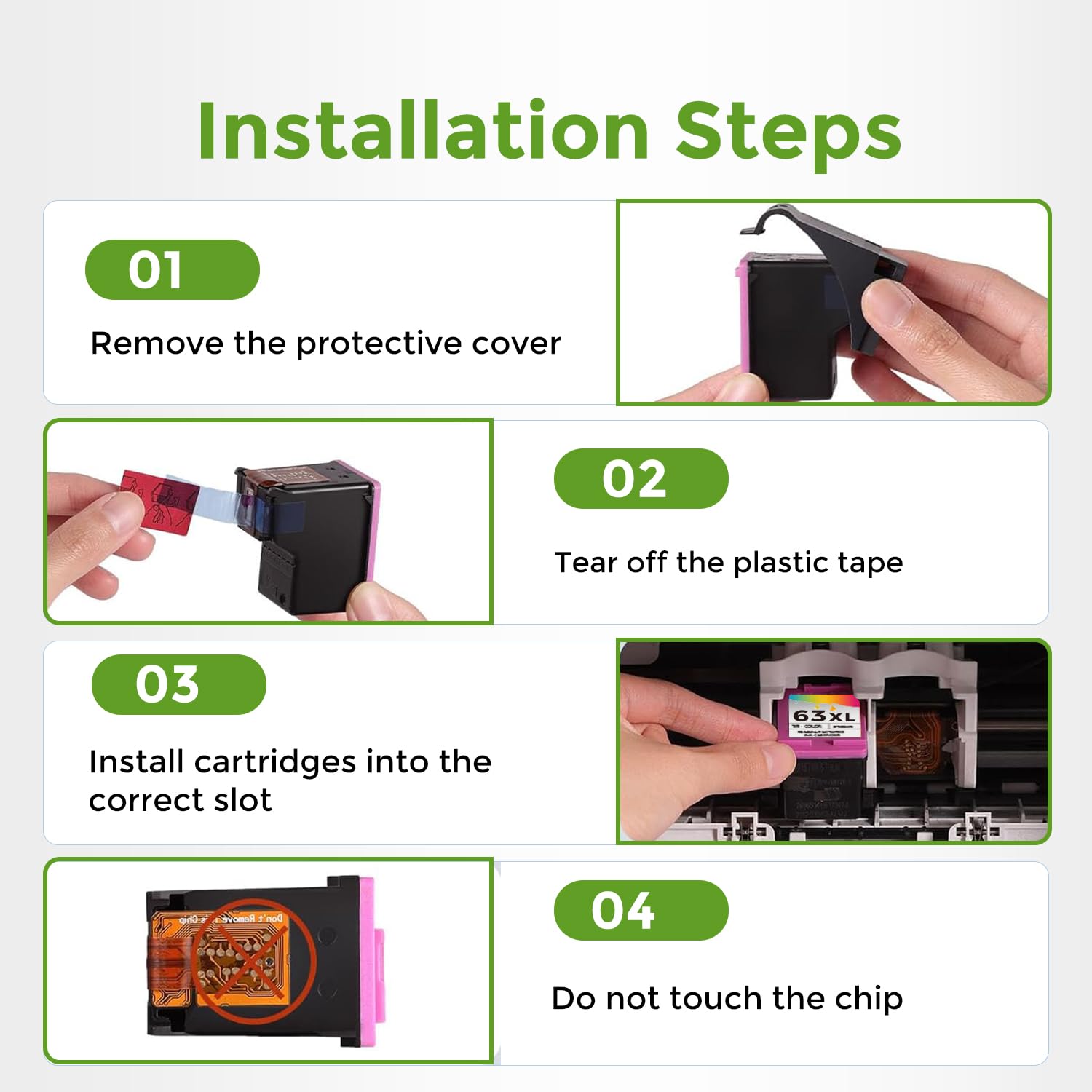 - Package Content: 2 pack of 63XL ink cartridges combo pack ——1x 63xl Black, 1x 63xl Tri-Color