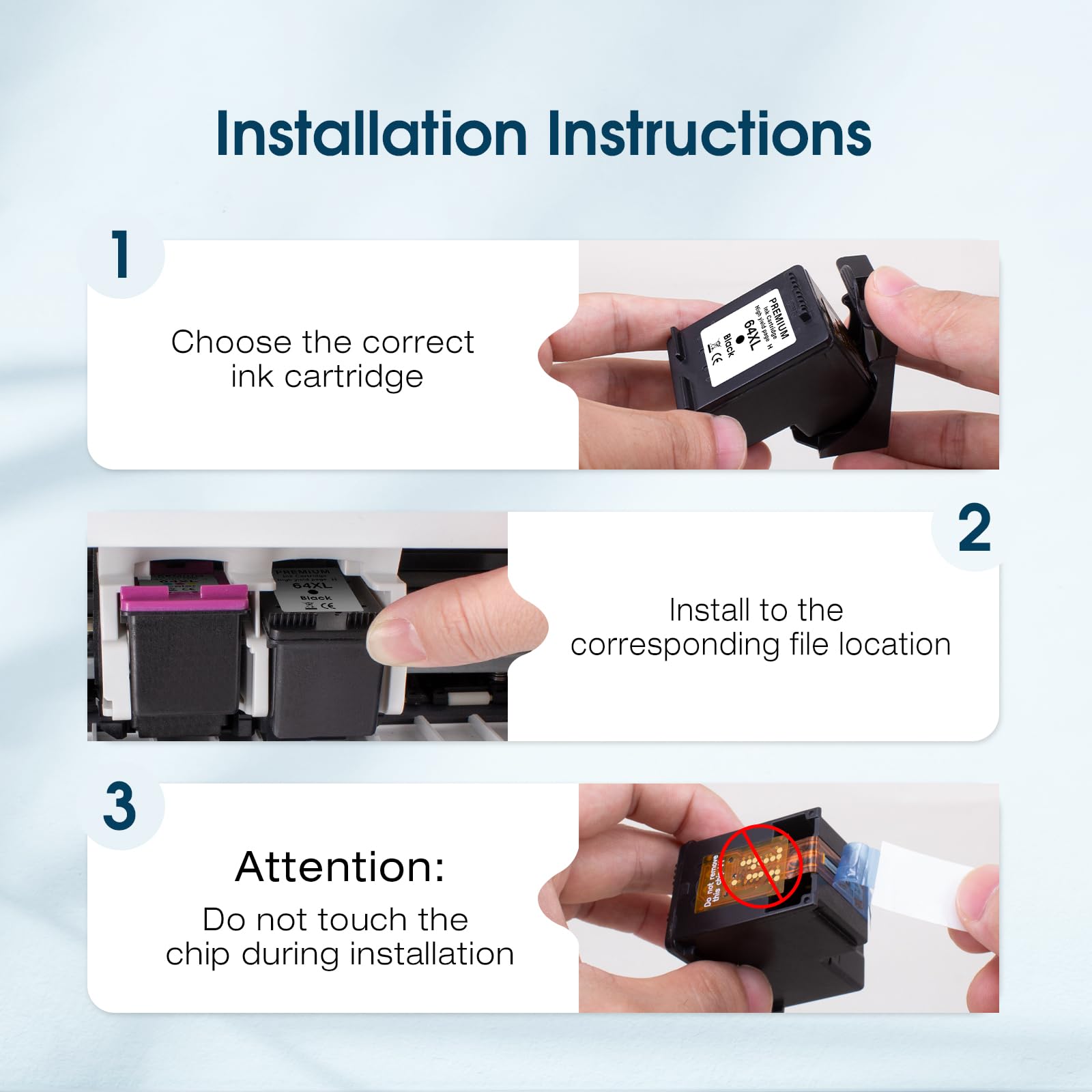 - 64 XL ink cartridges for HP printers -With Latest Chips: All our 64XL for hp ink 64 with the latest upgraded high accuracy chips, ensure perfect compatibility with your printer