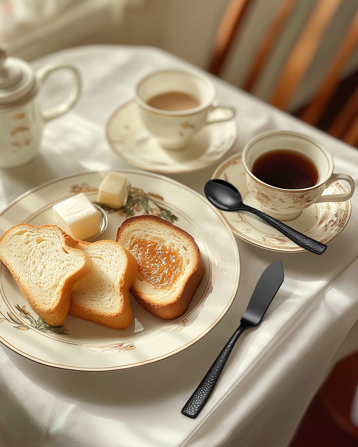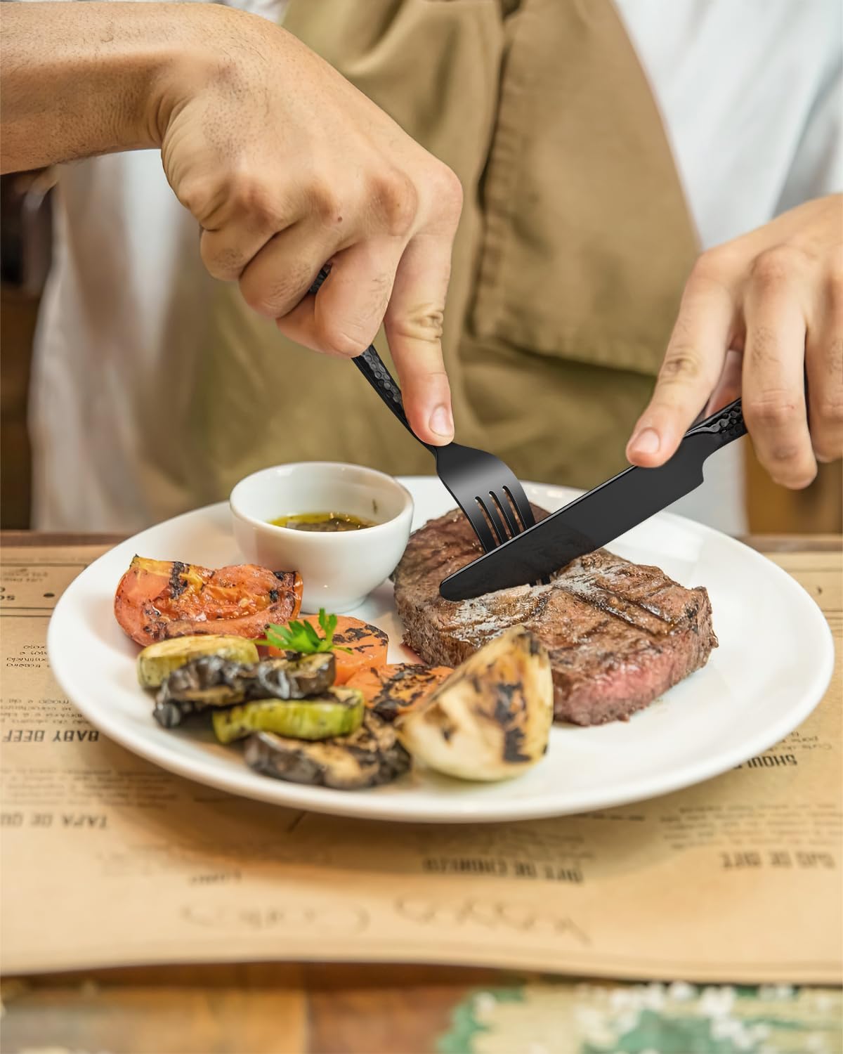 - Premium Heavy Duty Crafted: Black Flatware Set made of thick gauge food-grade stainless steel offers durability, rust&corrosion resistance. Enhanced by the advanced hot forged process to strengthen durability, never bends or chips in daily use, ensuring the longest-term value and optimal performance for using