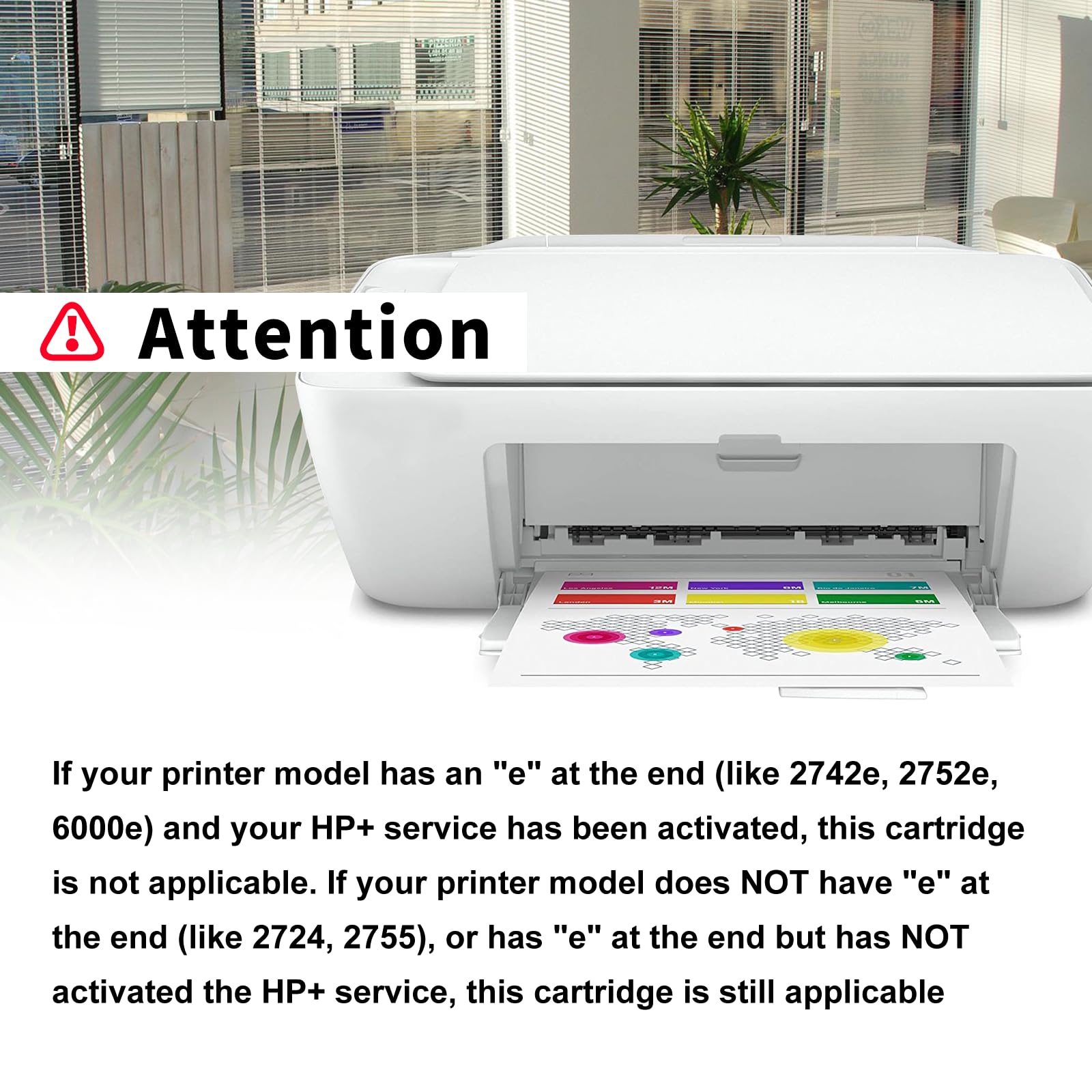 - Attention: If your printer model has an "e" at the end (like 2742e, 2752e, 6000e) and your HP+ service has been activated, this cartridge does not work. If your printer model does NOT have "e" at the end (like 2724, 2755), or has "e" at the end but has NOT activated the HP+ service, this cartridge still works