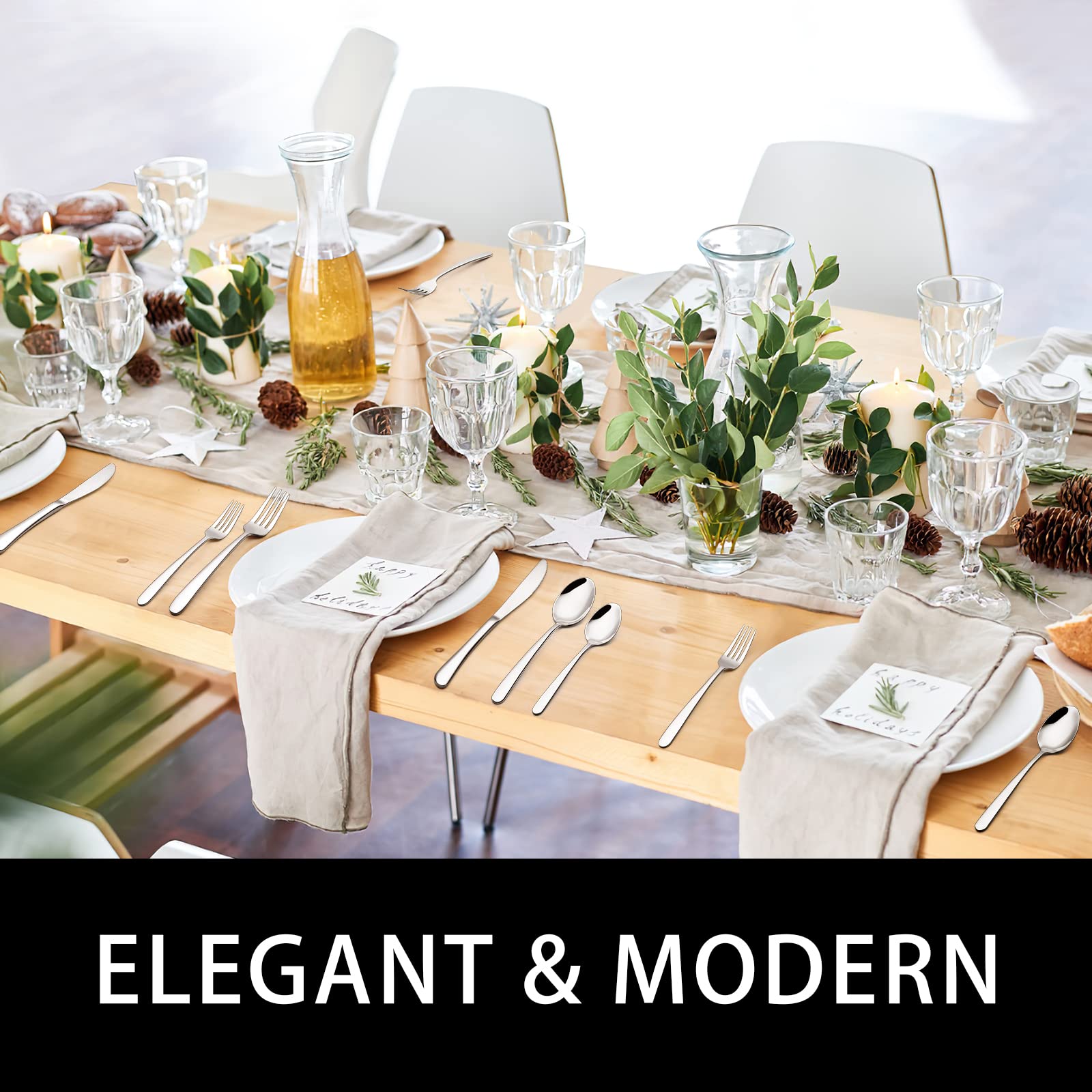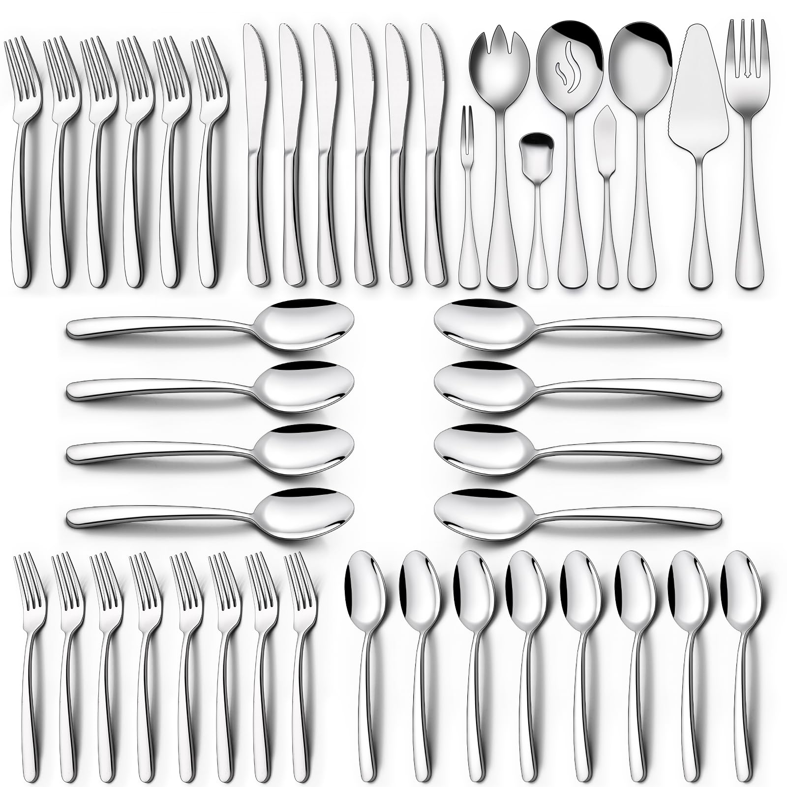- COMFORTABLE DESIGN: This flatware set has a classic silhouette with clean lines and polish-finish surface in all silver, a good choice to go with your existing tableware. The smooth edge of the handle is pleasure to hold, appropriate weight and perfect balance are added to ensure maximum comfort during use.